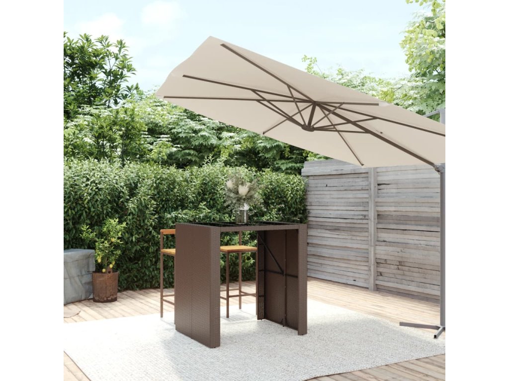 Multidom Barový stôl so sklenenou doskou hnedý 105x80x110 cm polyratan