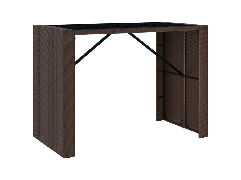Multidom Barový stôl so sklenenou doskou hnedý 145x80x110 cm polyratan