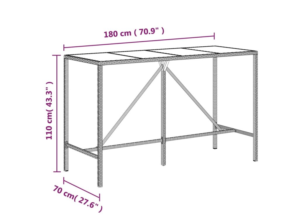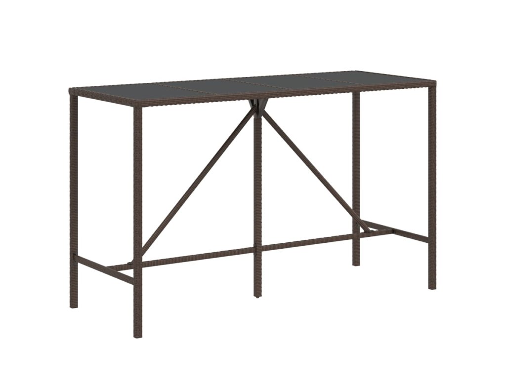 Multidom Barový stôl so sklenenou doskou hnedý 180x70x110 cm polyratan