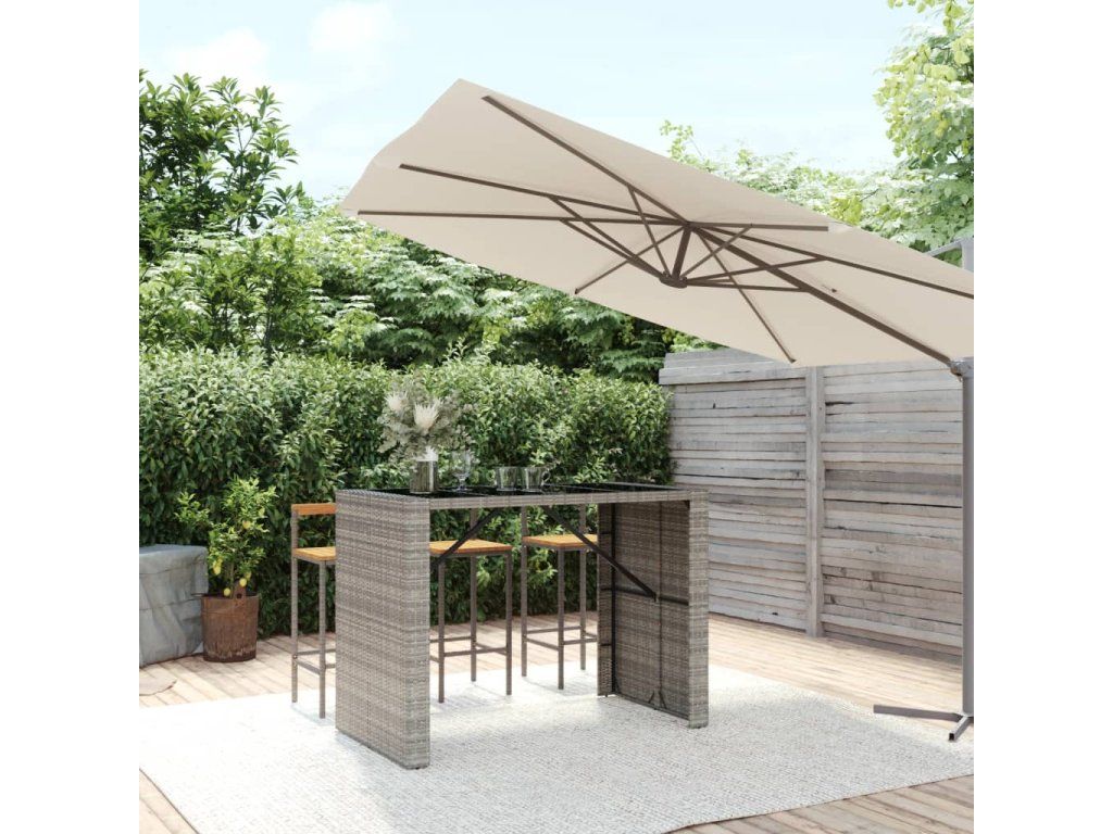 Multidom Barový stôl so sklenenou doskou sivý 145x80x110 cm polyratan