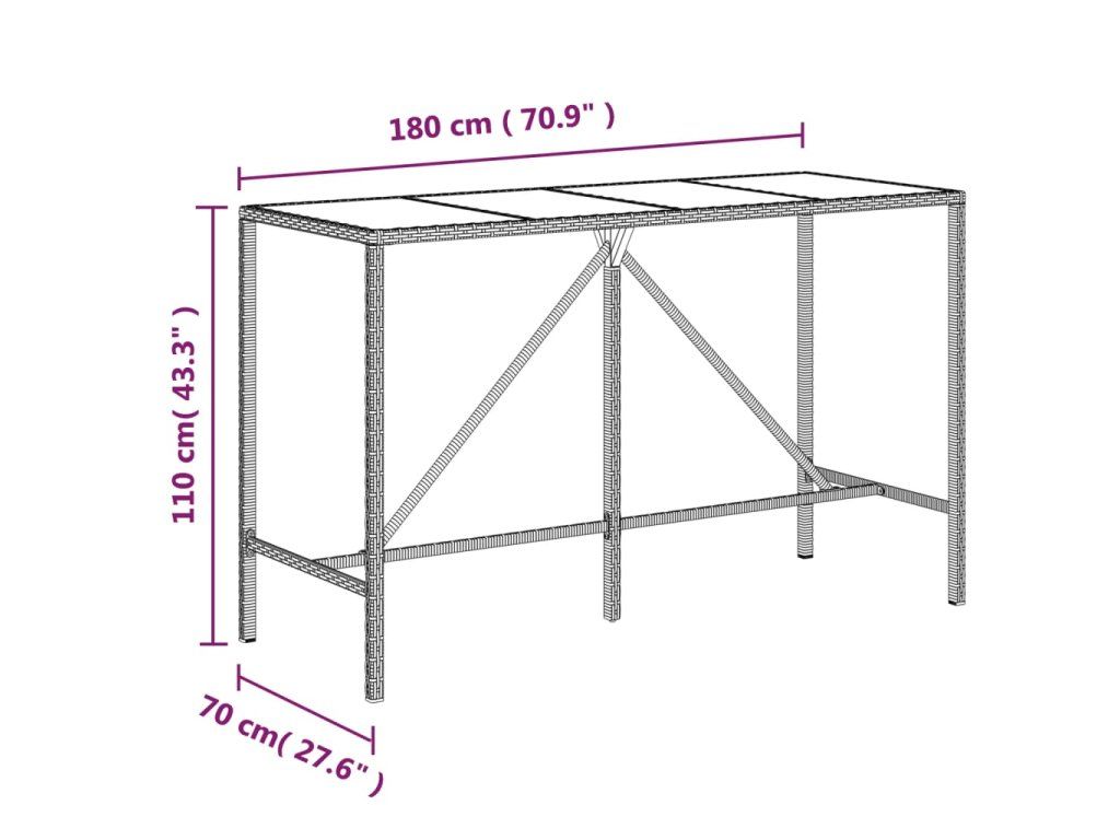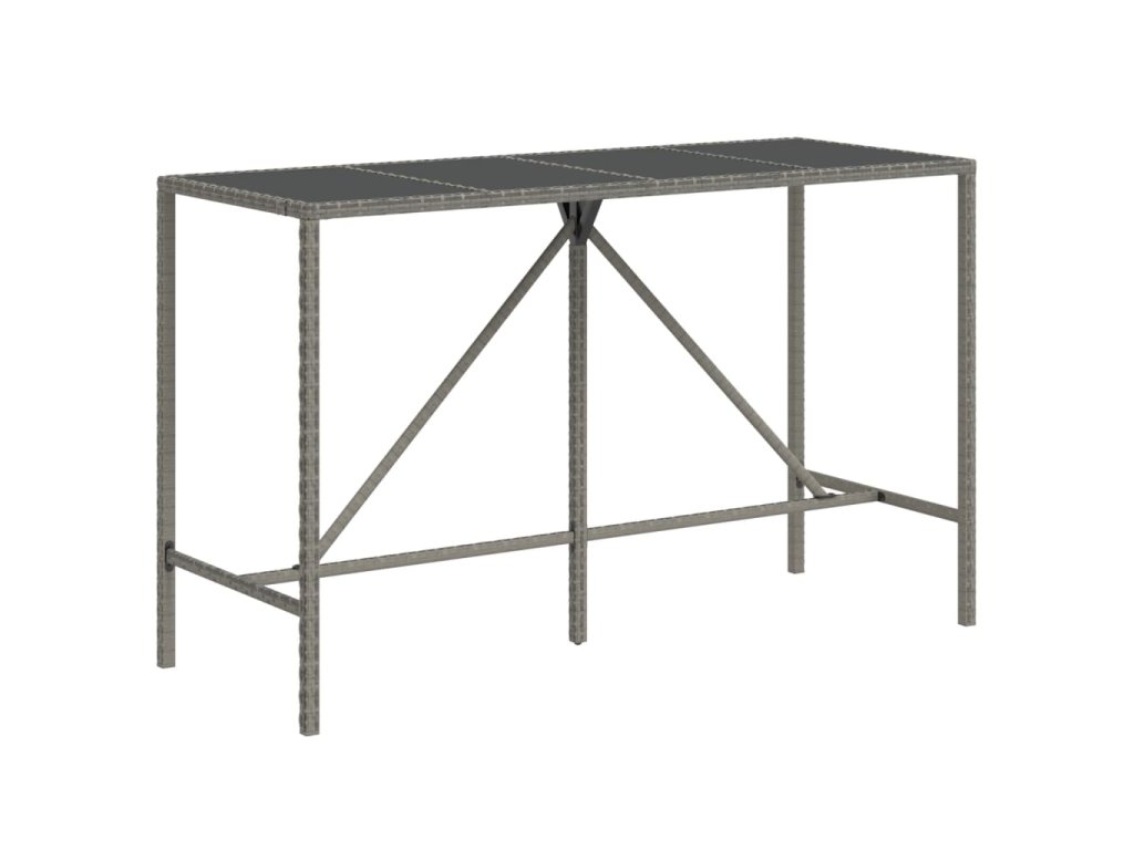 Multidom Barový stôl so sklenenou doskou sivý 180x70x110 cm polyratan