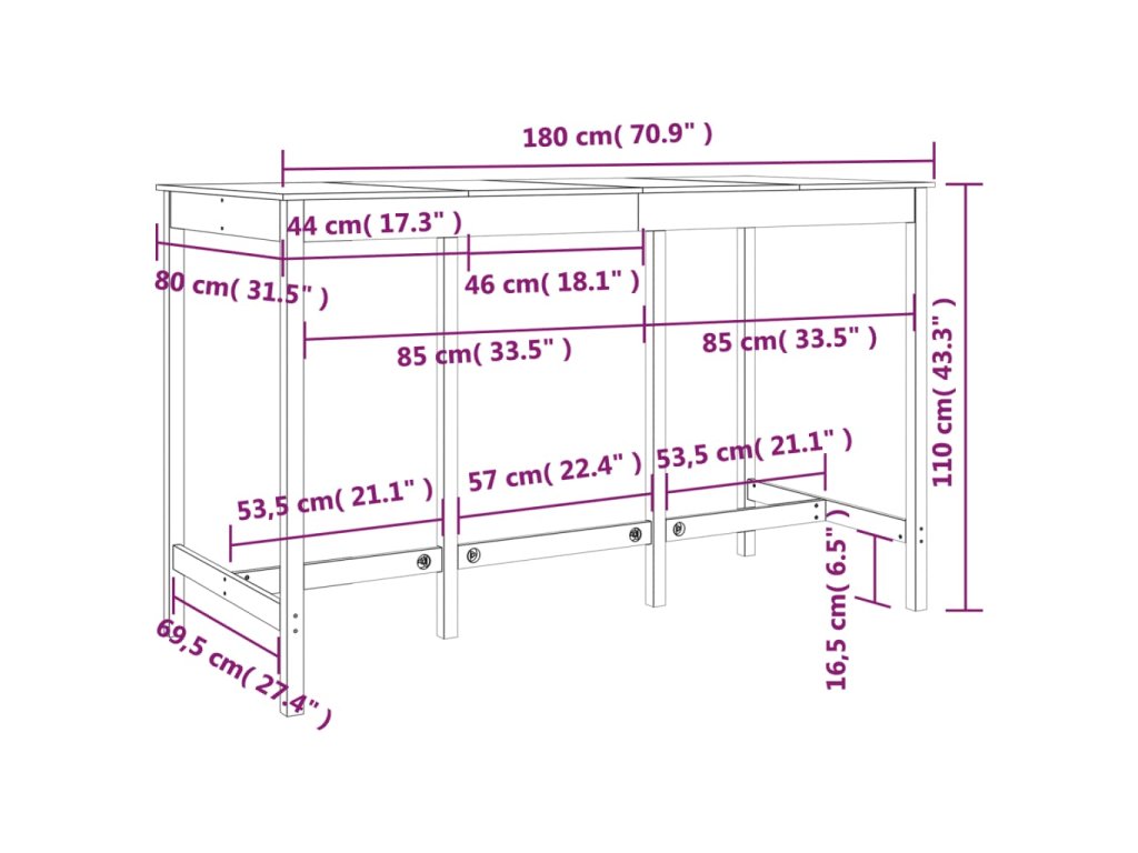 Multidom Barový stolík biely 180x80x110 cm borovicový masív