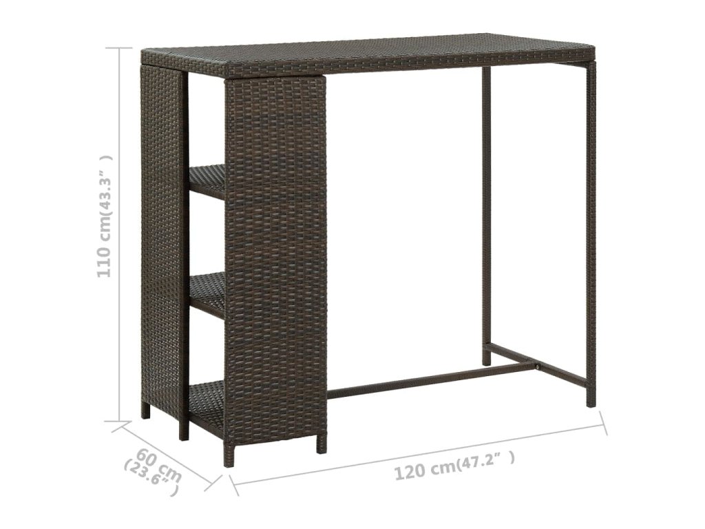 Multidom Barový stolík s úložným regálom hnedý 120x60x110 cm polyratan
