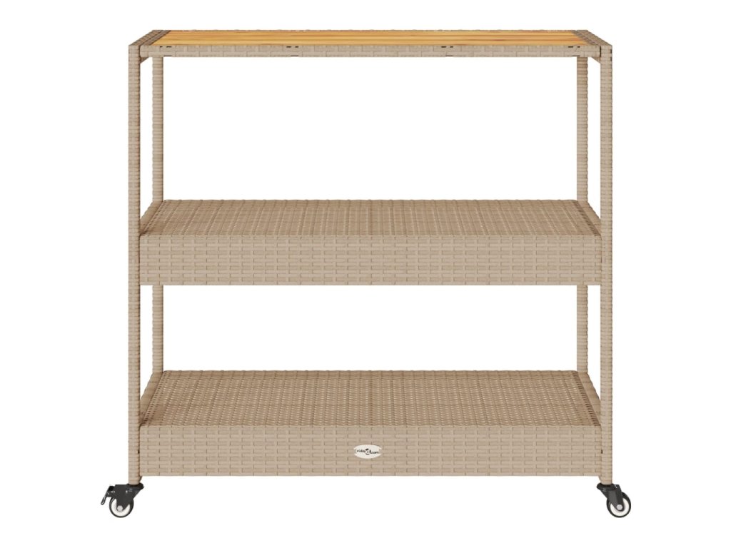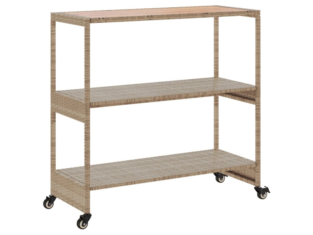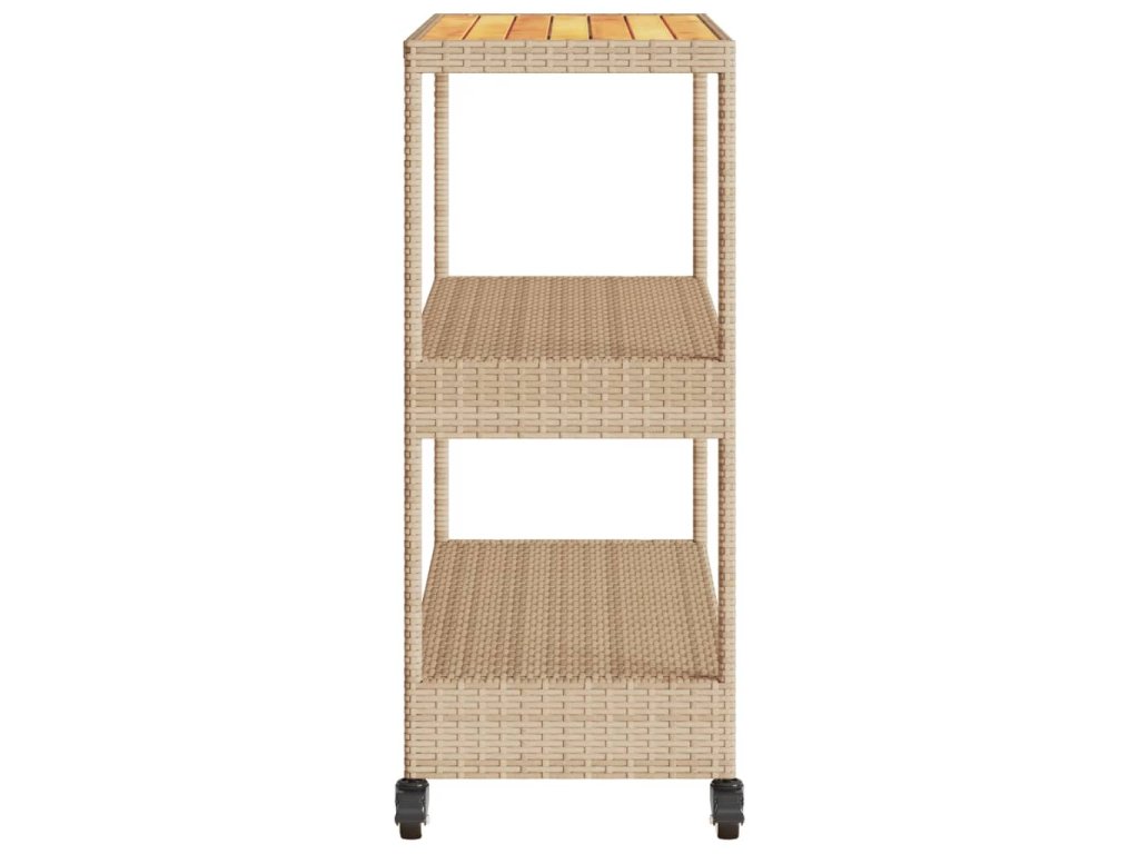 Multidom Barový vozík, 3 police, béžový, polyratan a akáciový masív