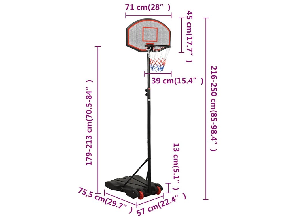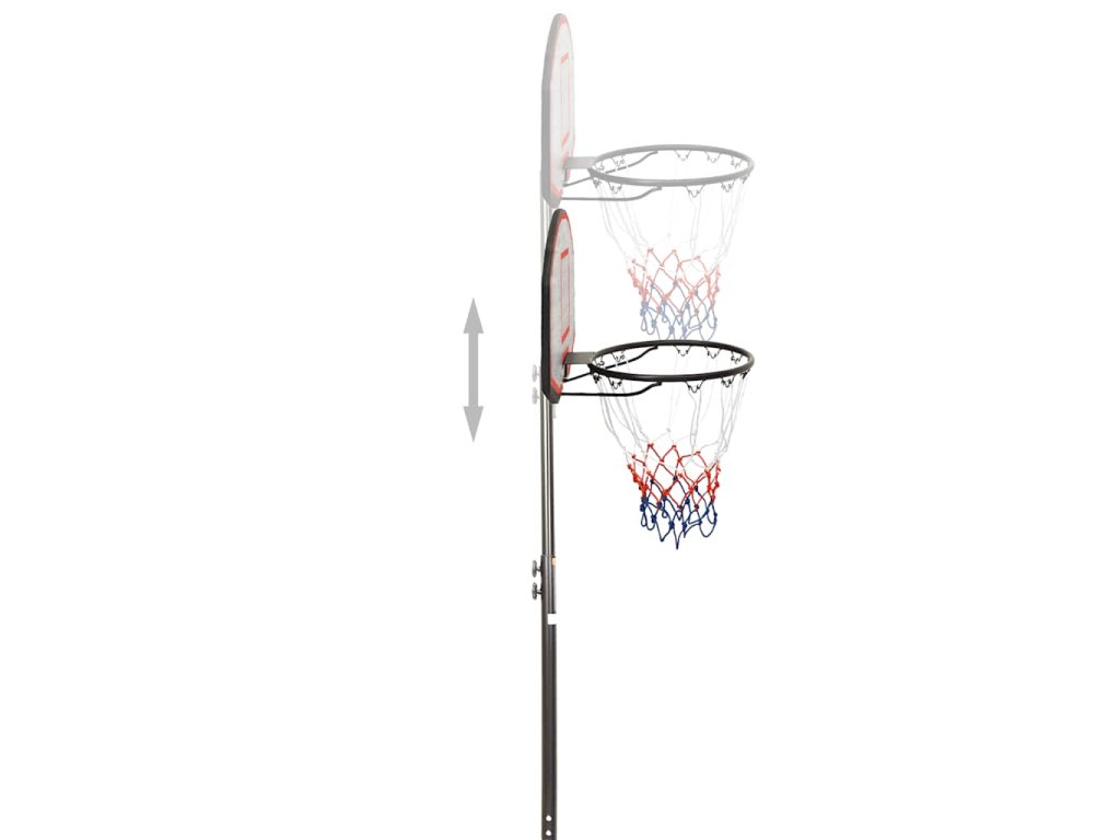 - Nastaviteľná výška: Stojan na basketbalový kôš má nastaviteľnú výšku a dá sa natiahnuť tak, aby vyhovoval rôznym hráčom. Tento basketbalový stojan je možné nastaviť na výšku od 216 cm do 250 cm.