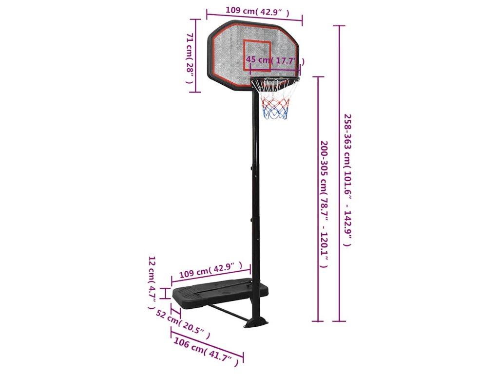 Multidom Basketbalový stojan čierny 258-363 cm polyetén