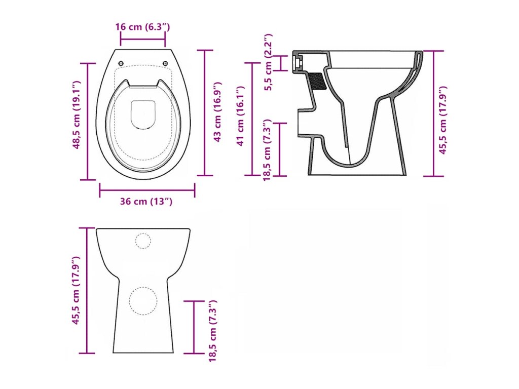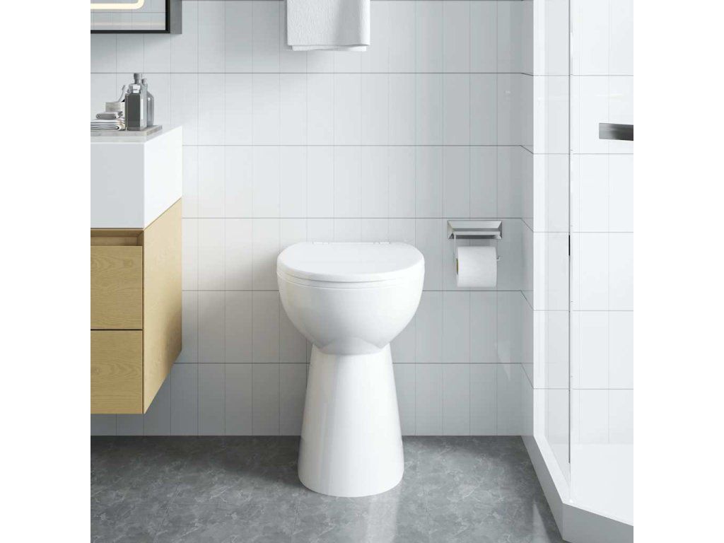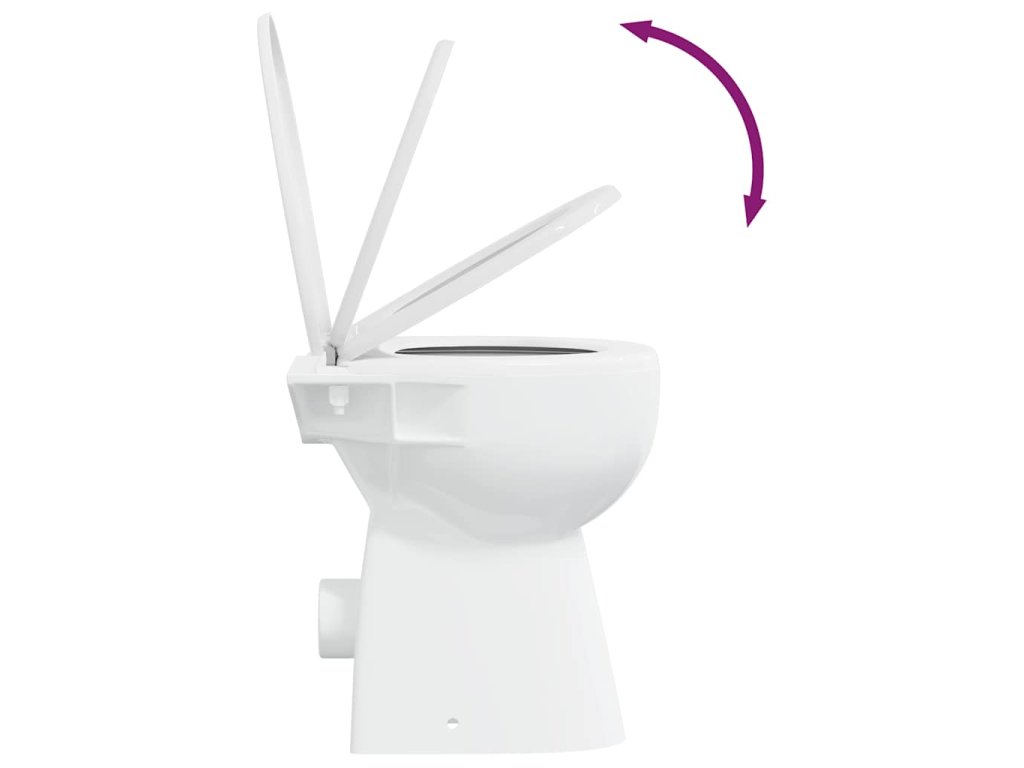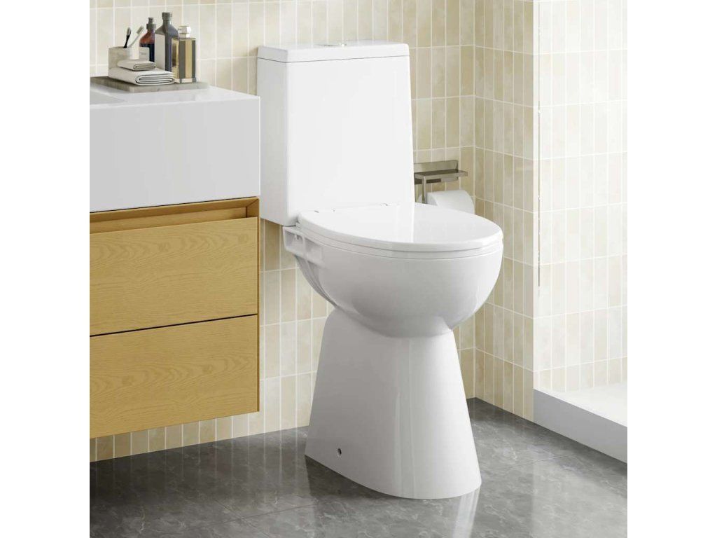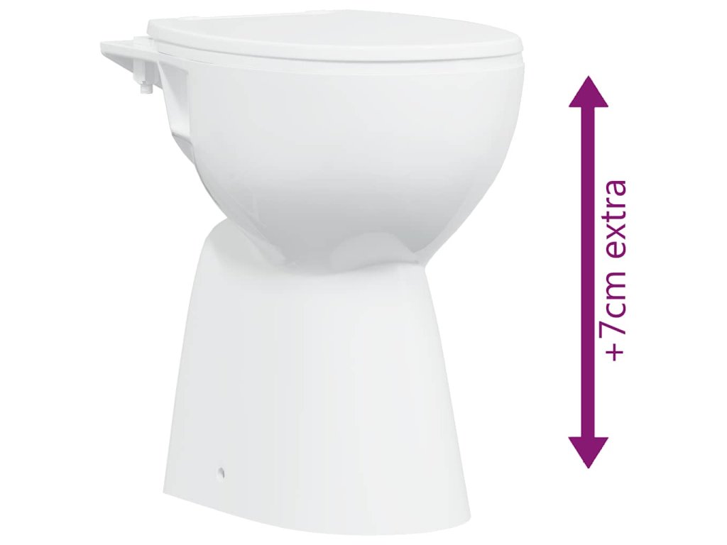 Sedadlo s automatickým mechanizmom mäkkého zatvárania zabraňuje pádu poklopu toalety. Zvýšená výška o 7 cm vám poskytne pohodlie pri sedení, najmä pre vysokých ľudí a seniorov. Toto WC sa ľahko montuje.