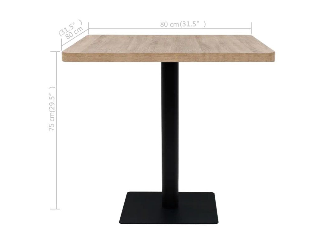 Multidom Bistro stolík, MDF a oceľ, štvorcový, 80x80x75 cm, dubová farba