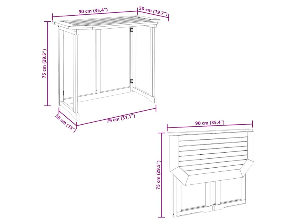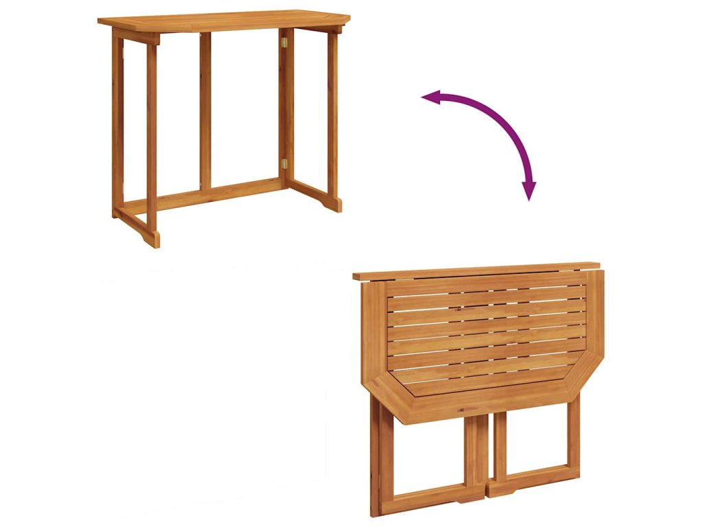 Stôl na balkón je vyrobený z akáciového masívu prvotriednej kvality. Ide o drevo tropického listnatého stromu, ktoré je trvácne, odolné voči poveternostným vplyvom a vhodné do exteriéru. Povrch stola s olejovým náterom sa dá ľahko očistiť pomocou navlhčenej handričky. Stôl sa dá poskladať a jednoducho skladovať alebo prepraviť.