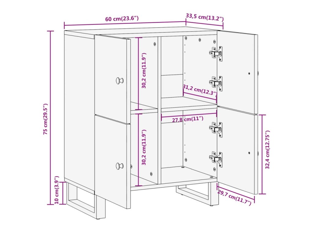 - Pevné nohy: Železné nohy dodávajú bočnej skrinke robustnosť a stabilitu.