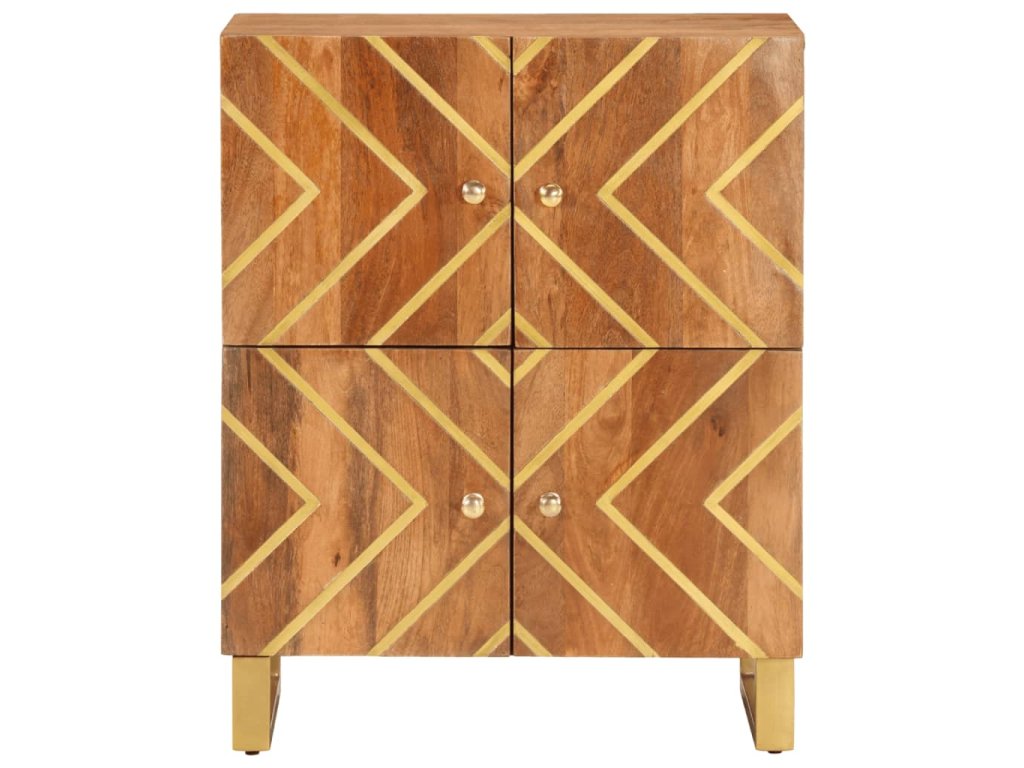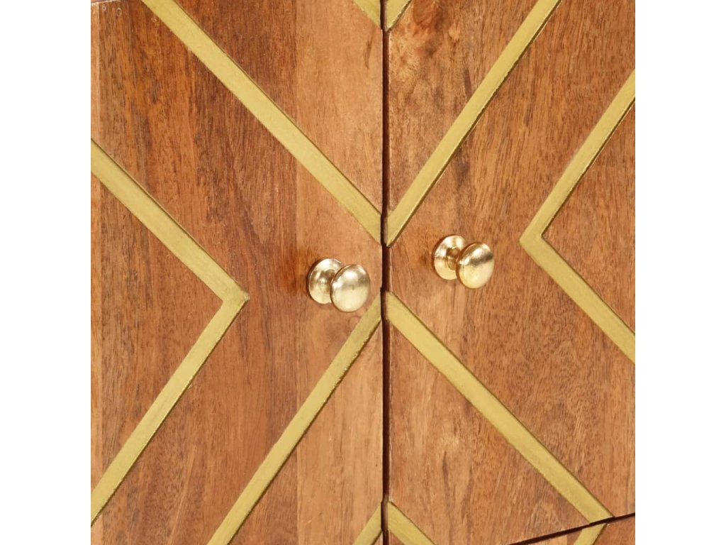 - Materiál: Mangovníkový masív s povrchovou úpravou v akáciovej farbe, MDF, železo