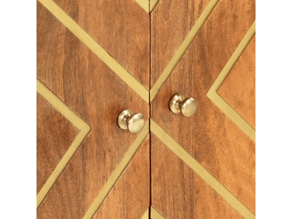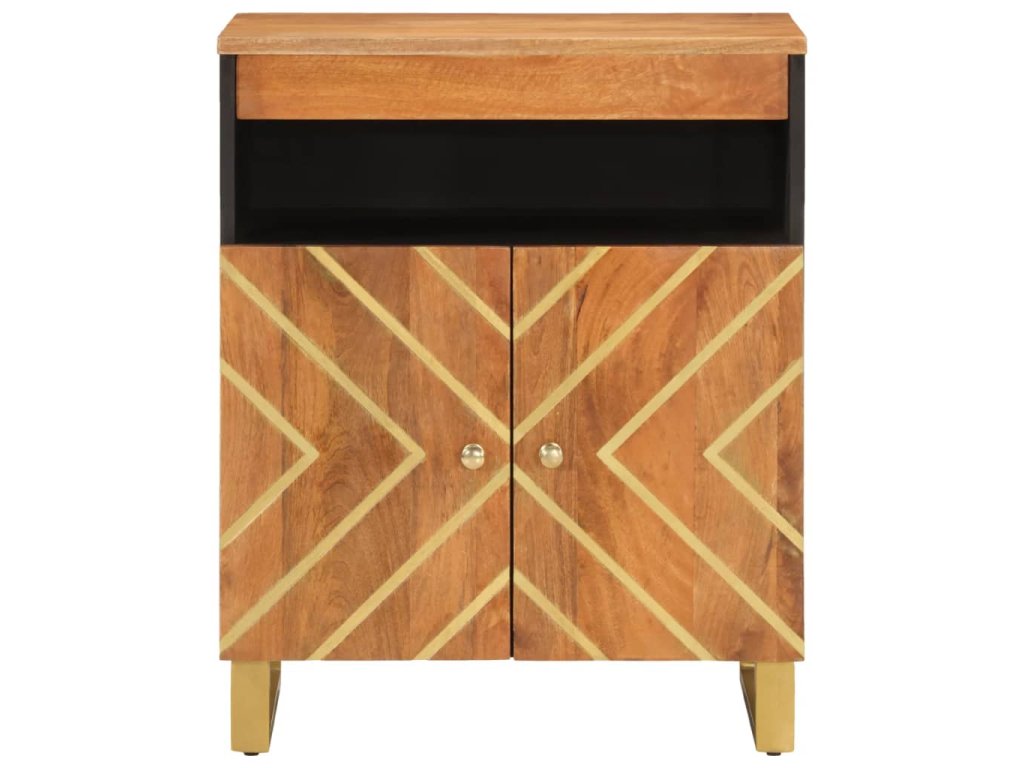 - Materiál: Mangovníkový masív s povrchovou úpravou v akáciovej farbe, MDF, železo