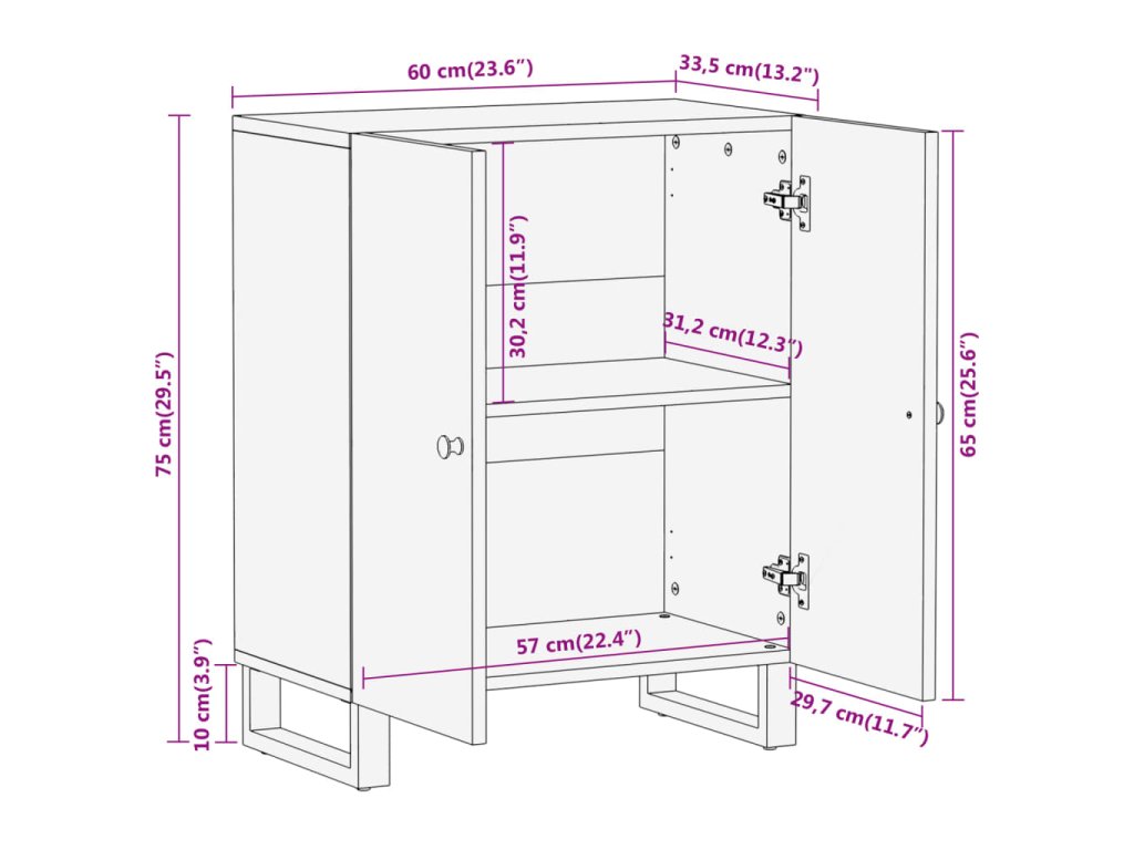 - Pevné nohy: Železné nohy dodávajú bočnej skrinke robustnosť a stabilitu.