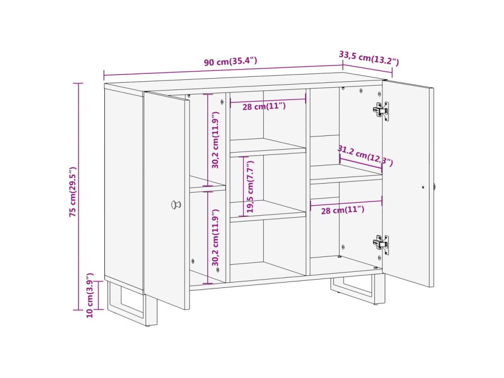 - Pevné nohy: Železné nohy dodávajú bočnej skrinke robustnosť a stabilitu.