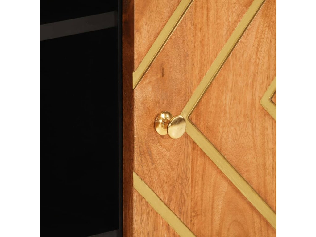 - Materiál: Mangovníkový masív s povrchovou úpravou v akáciovej farbe, MDF, železo