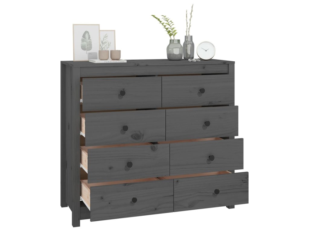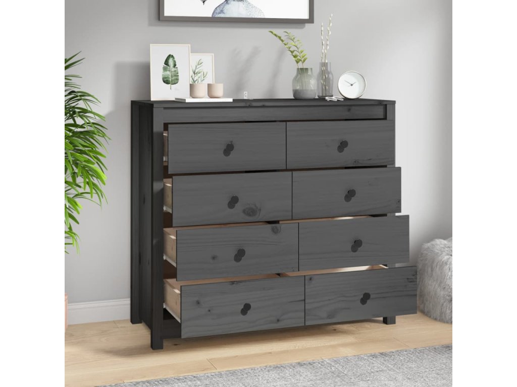 Multidom Bočná skrinka sivá 100x40x90 cm masívna borovica