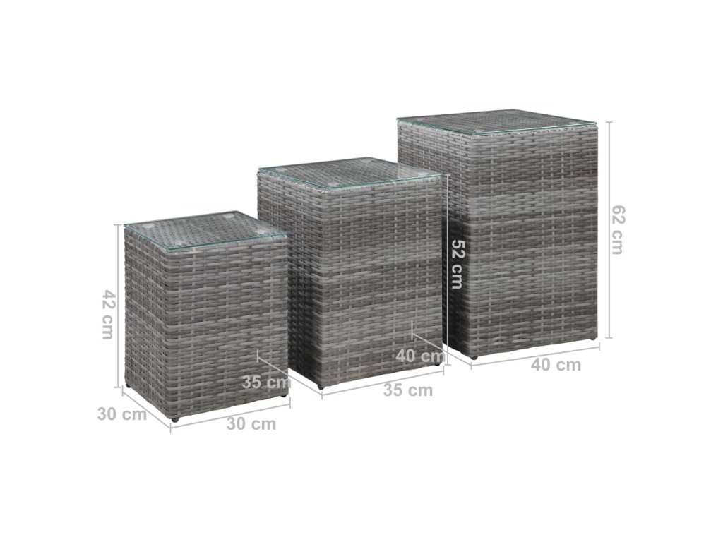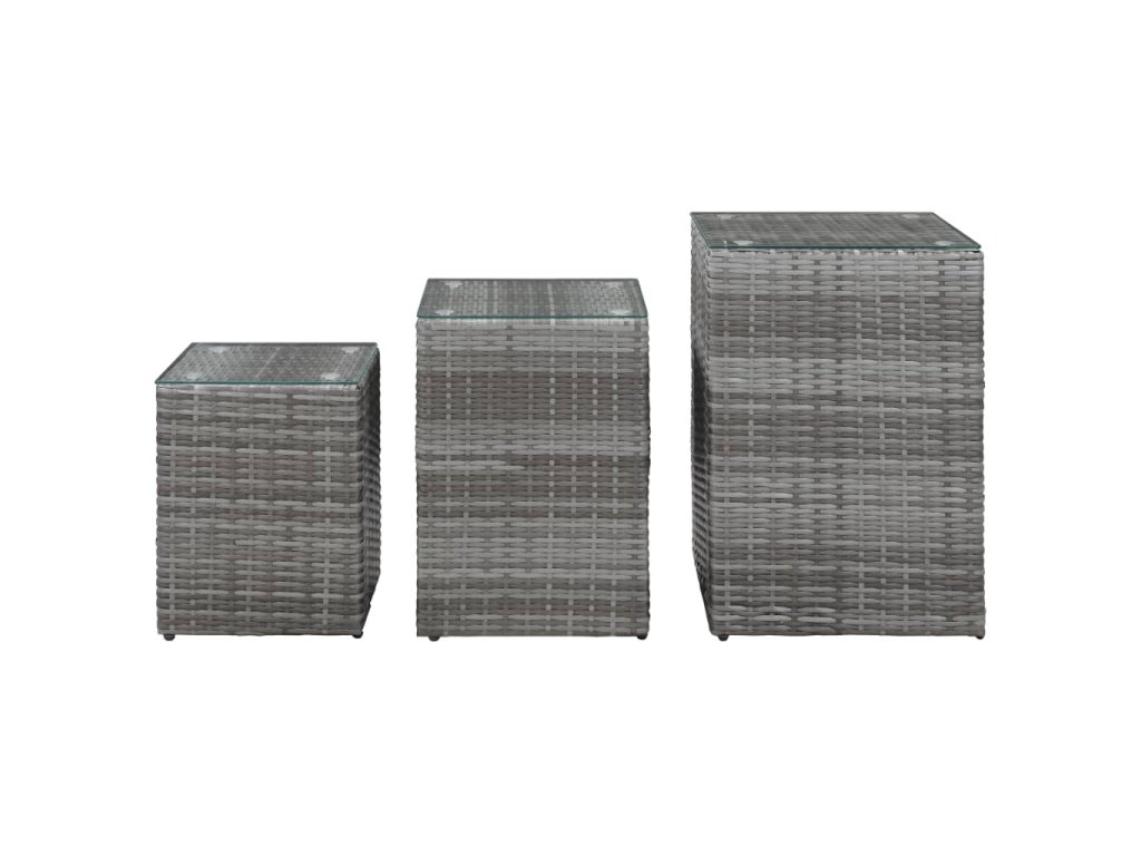 Multidom Bočné stolíky so sklenenou doskou 3 ks sivé polyratanové