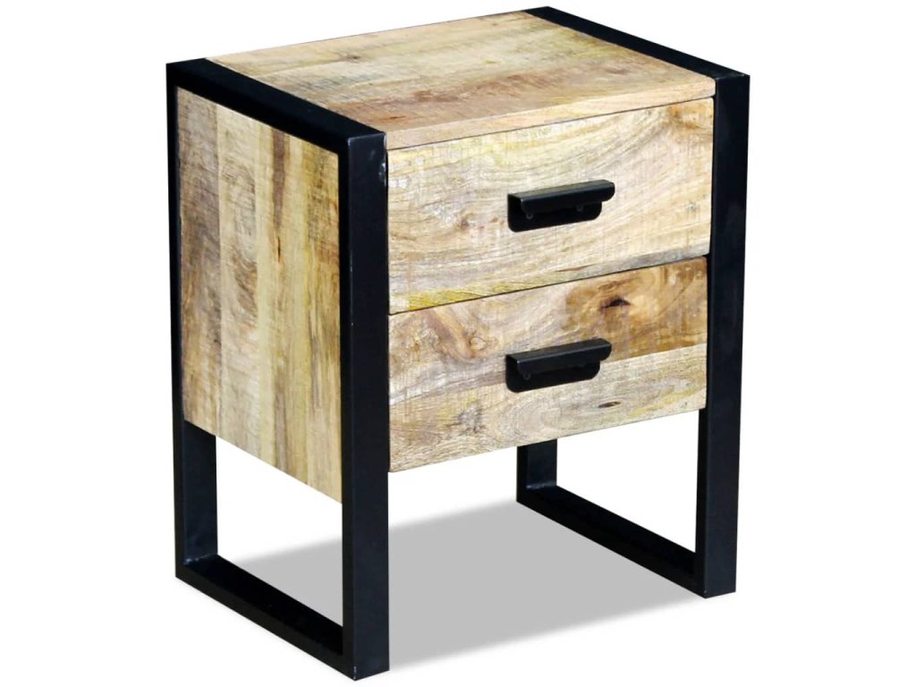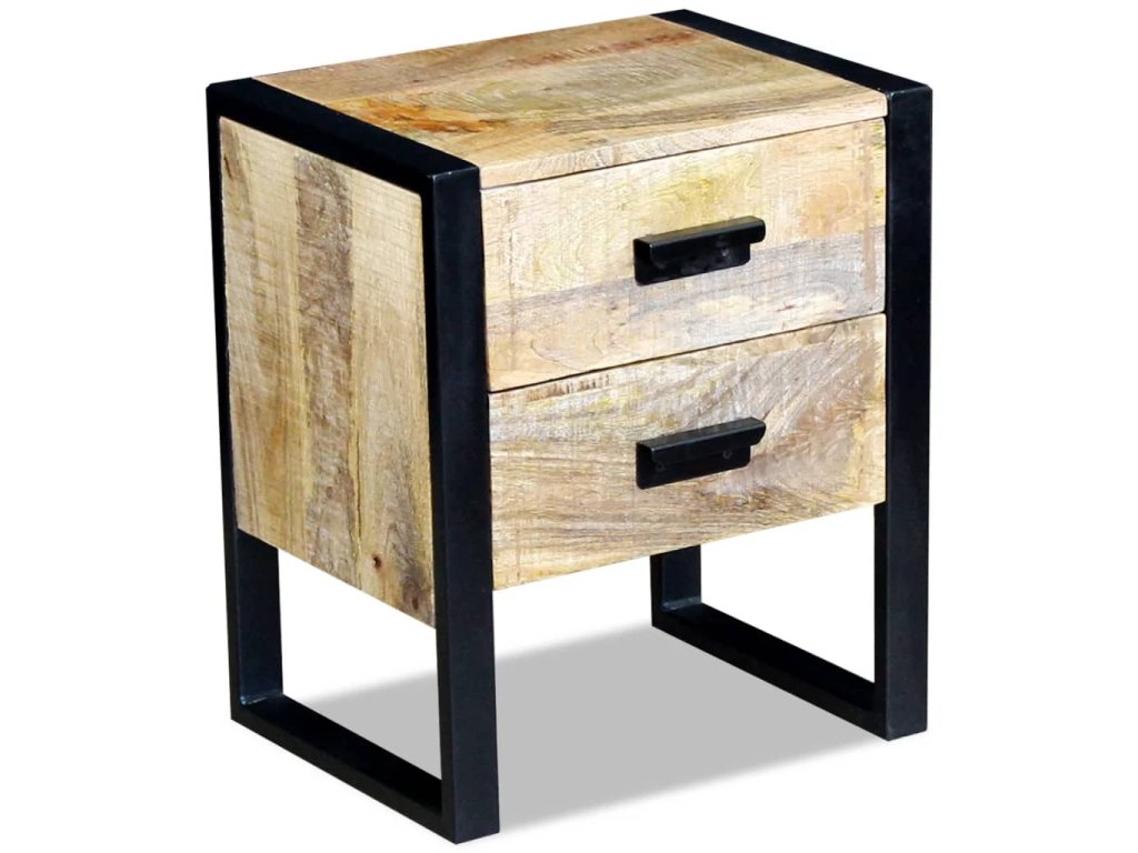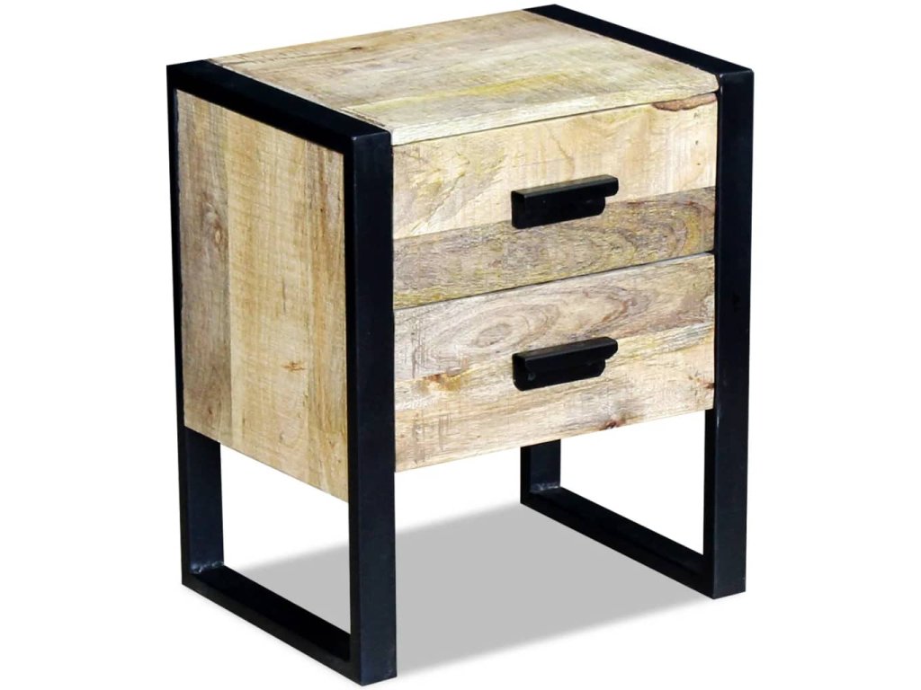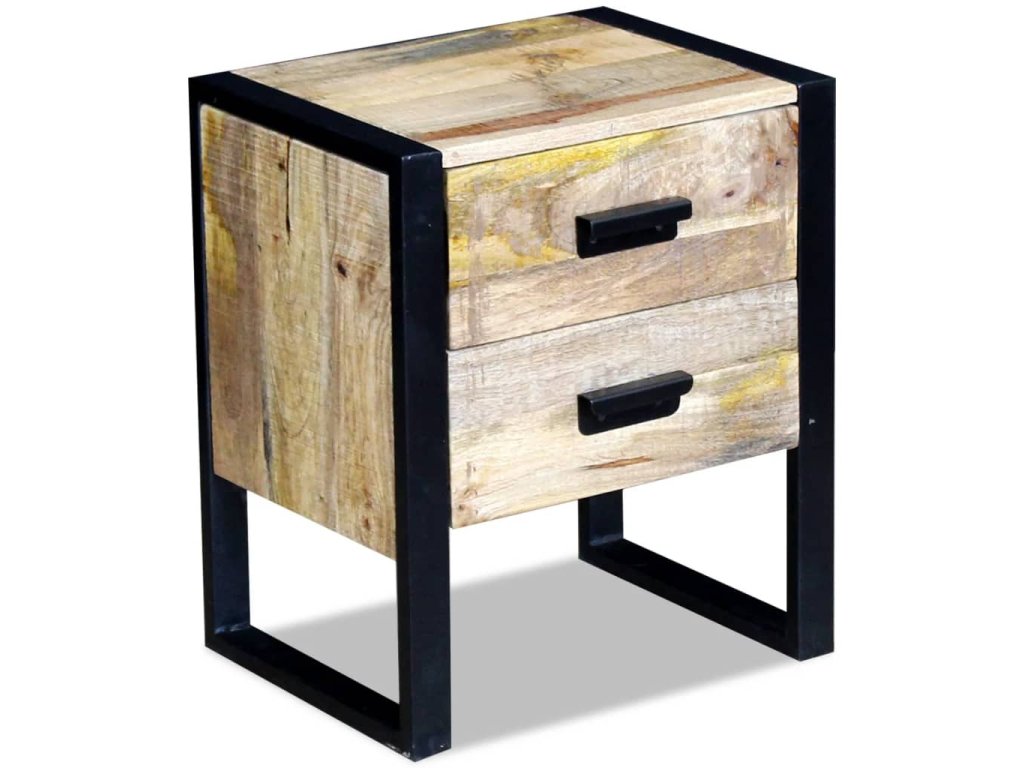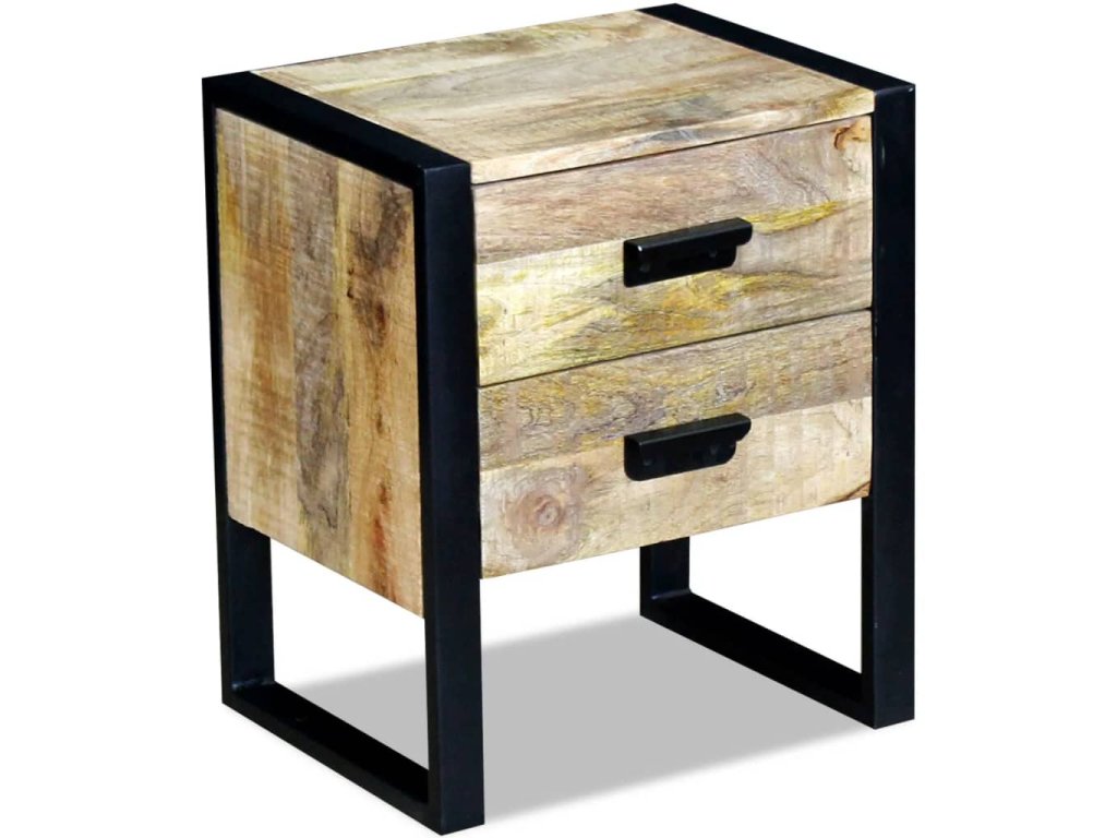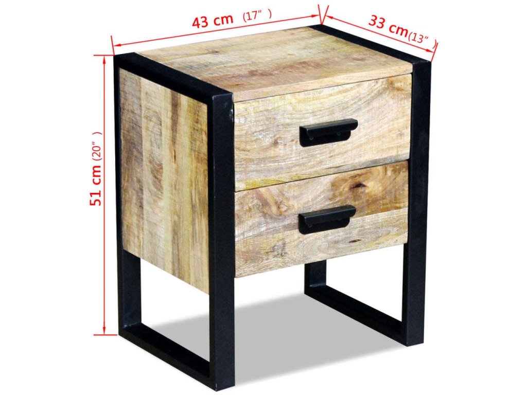Multidom Bočný stolík, 2 zásuvky, masívne mangové drevo, 43x33x51cm