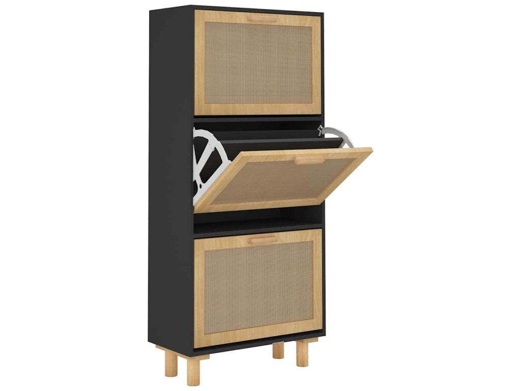Multidom Botník čierny 52x25x115 cm spracované drevo a prírodný ratan