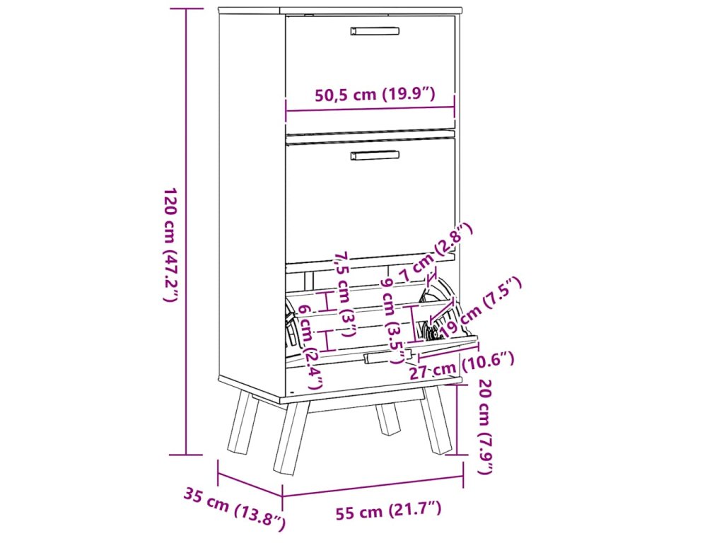 Multidom Botník OLDEN hnedý 55x35x120 cm borovicový masív