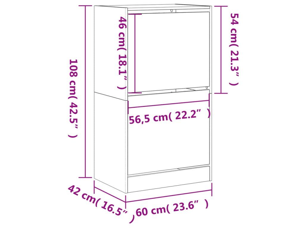 Multidom Botník s 2 výklopnými zásuvkami čierny 60x42x108 cm