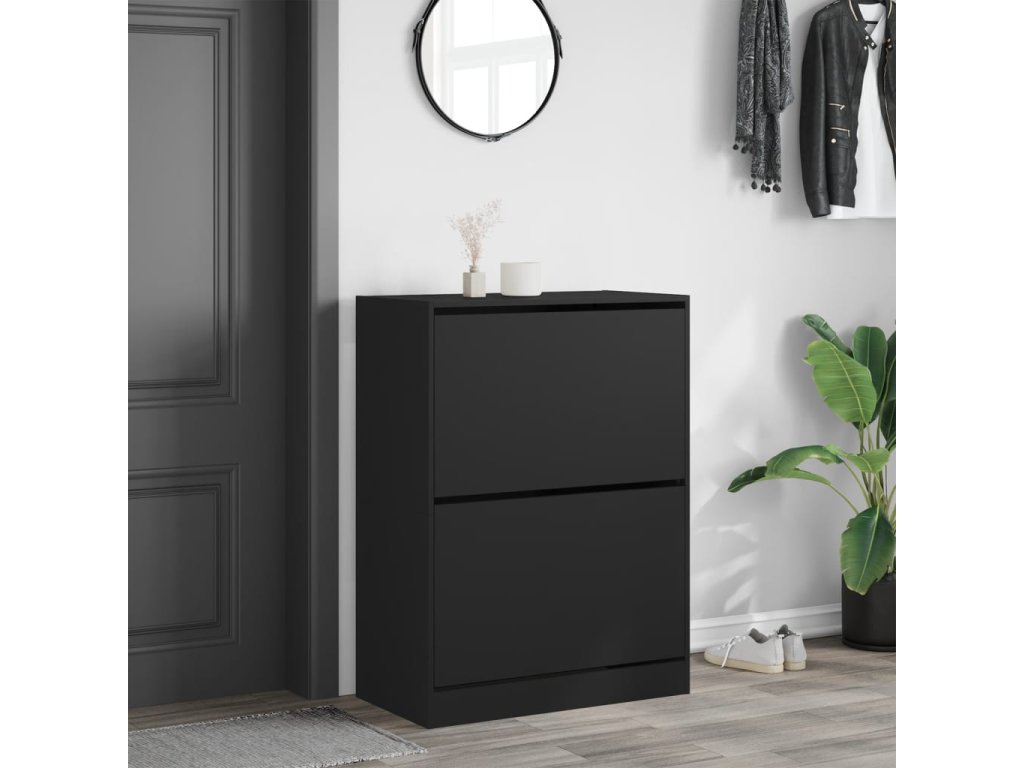 Multidom Botník s 2 výklopnými zásuvkami čierny 80x42x108 cm