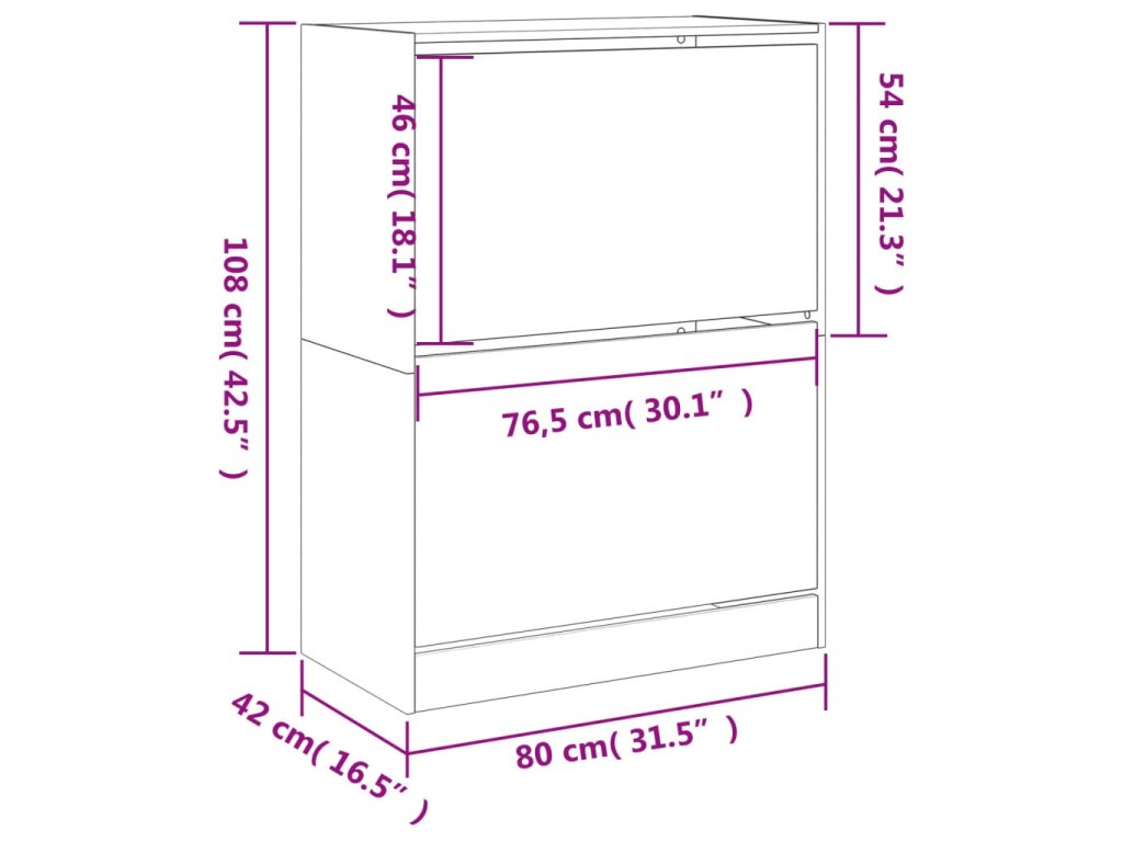 Multidom Botník s 2 výklopnými zásuvkami sivý dub sonoma 80x42x108 cm