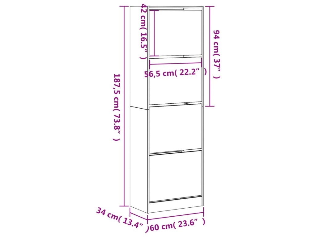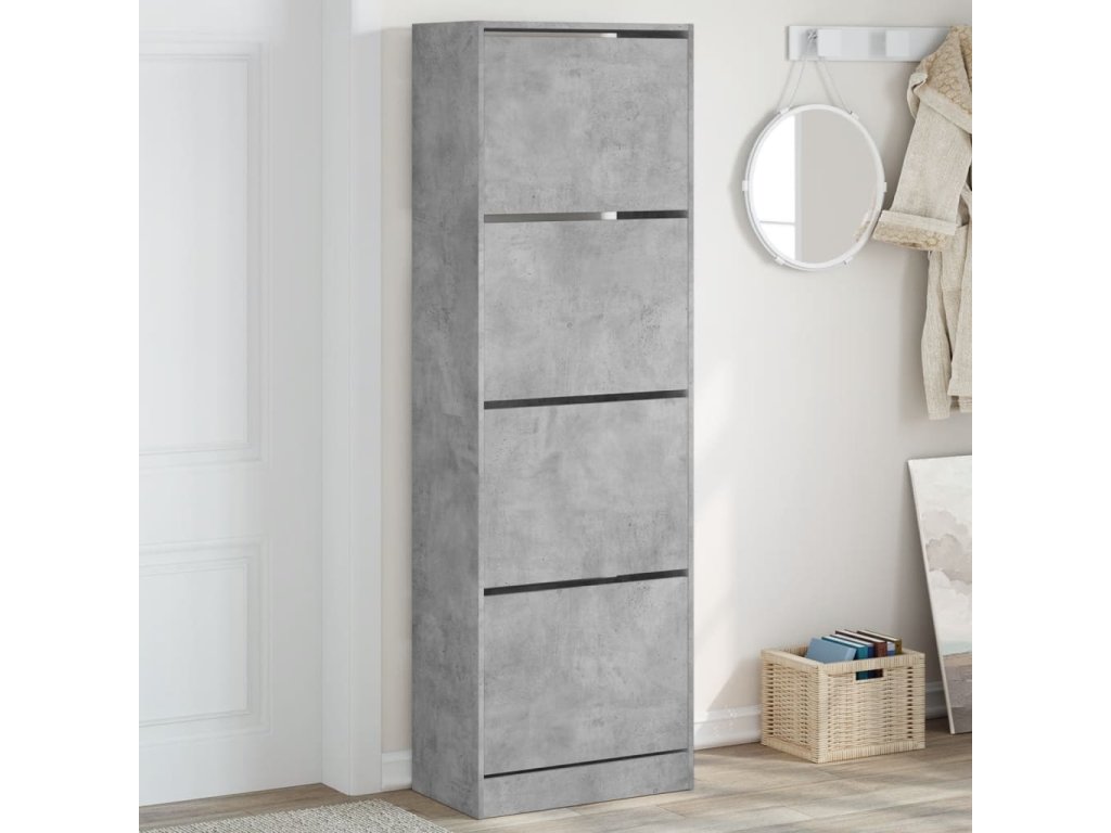 Multidom Botník so 4 výklopnými zásuvkami betónový sivý 60x34x187,5 cm