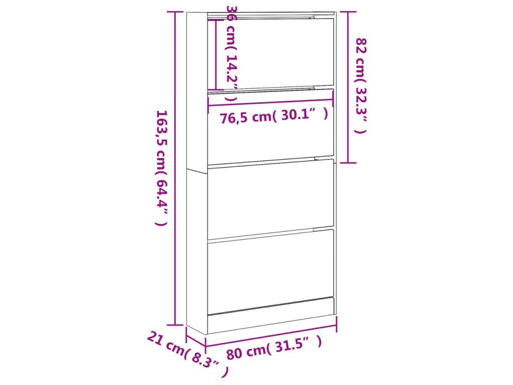 Multidom Botník so 4 výklopnými zásuvkami betónový sivý 80x21x163,5 cm