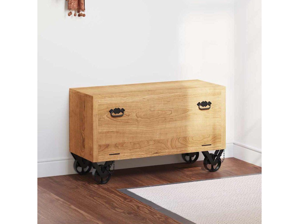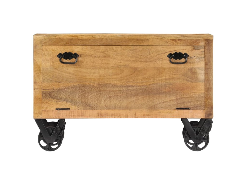 Tento botník je vyrobený z masívneho mangovníkového dreva, čo je tvrdé drevo s hustou štruktúrou. Hrubé mangovníkové drevo sa vyznačuje pevnosťou, ktorá unesie veľkú hmotnosť, a taktiež odolnosťou voči opotrebovaniu. Vďaka remeselnému spracovaniu a elegantnej štruktúre dreva je každý kus nábytku jedinečný a mierne odlišný od ostatných kusov. Tento botník má 2 skrinky s dvierkami a poskytuje tak veľký priestor na uskladnenie obuvi. Okrem toho má aj 4 kolieska, čo uľahčuje jeho premiestňovanie.