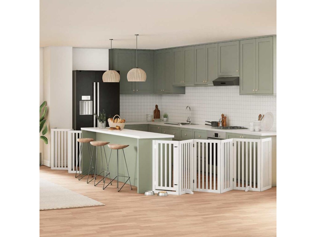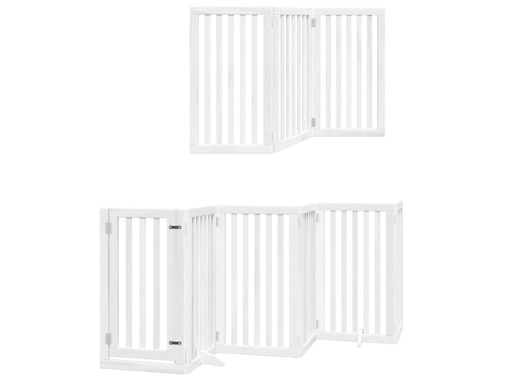 Multidom Brána pre psa s dverami sklad. 15pan.biela 750cm topoľové drevo