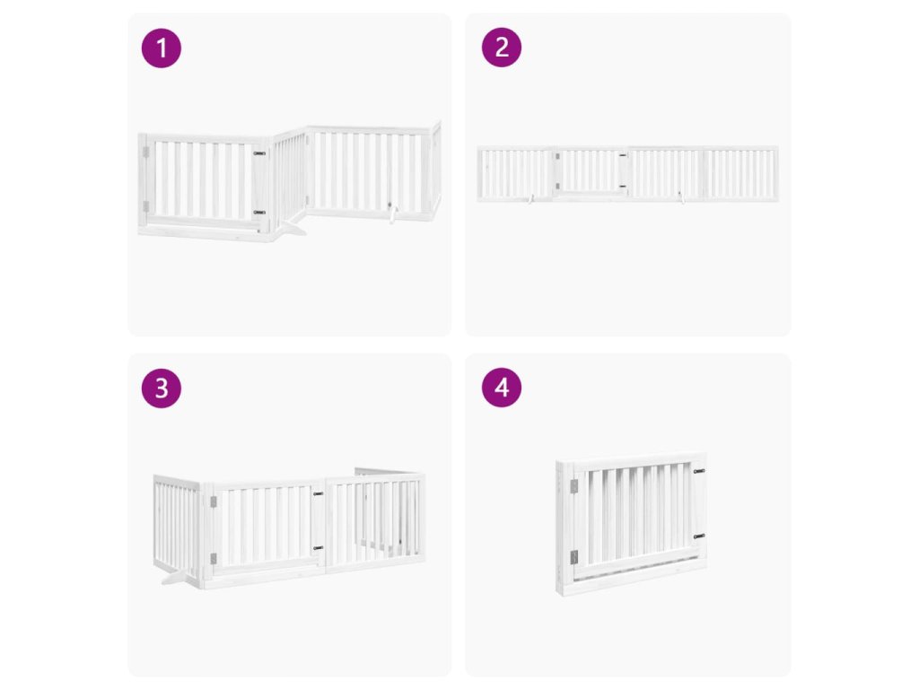 - Jednoduché použitie: Bránka pre psa nevyžaduje inštaláciu ani vŕtanie, takže nepoškodí váš domov. Táto brána pre psa môže byť úplne zložená, keď nemá nohy, čo uľahčuje prenášanie a skladovanie v skrini alebo niekde inde.