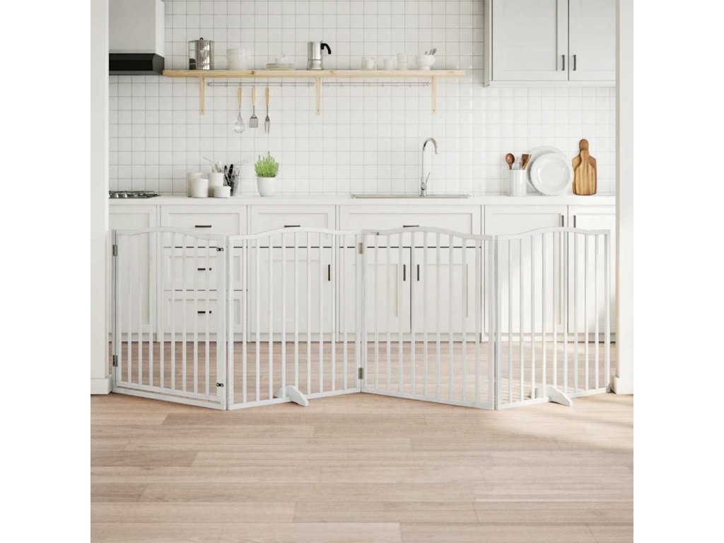 Multidom Brána pre psa s dverami sklad. 4pan. biela 320cm topoľové drevo