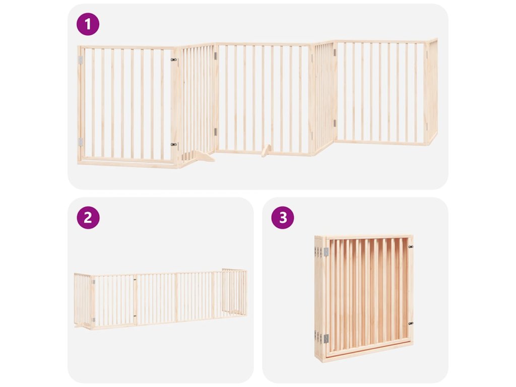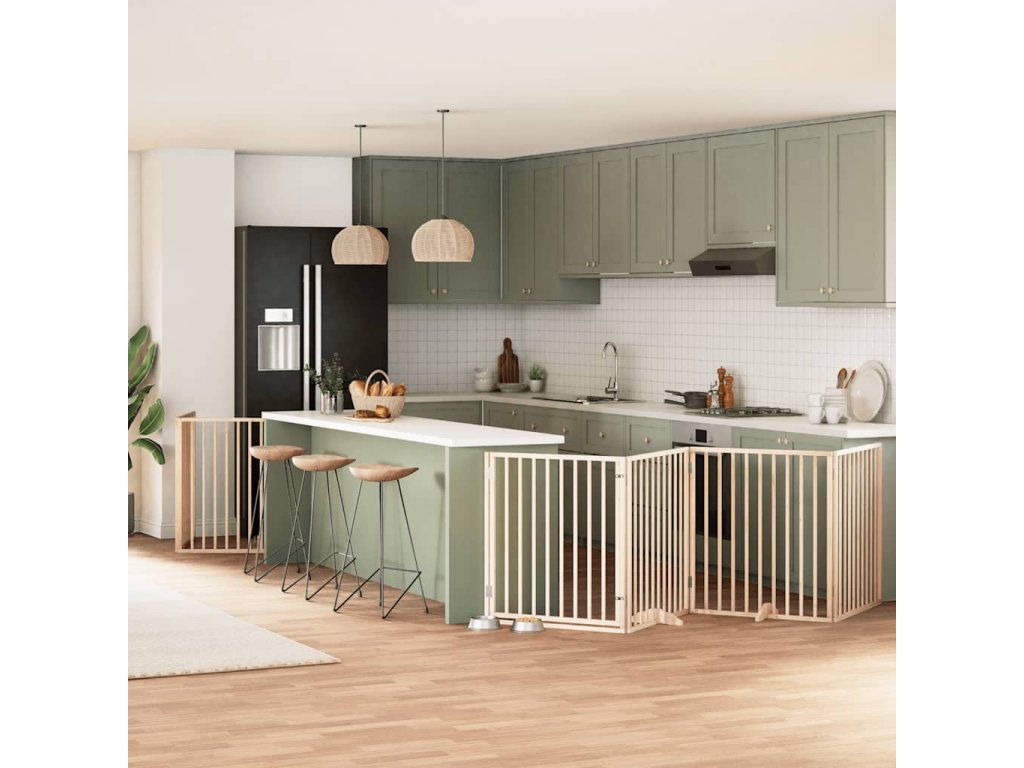 Multidom Brána pre psa s dverami sklad. 6 panelov 480 cm topoľové drevo