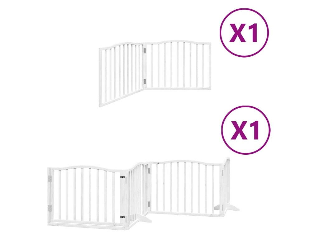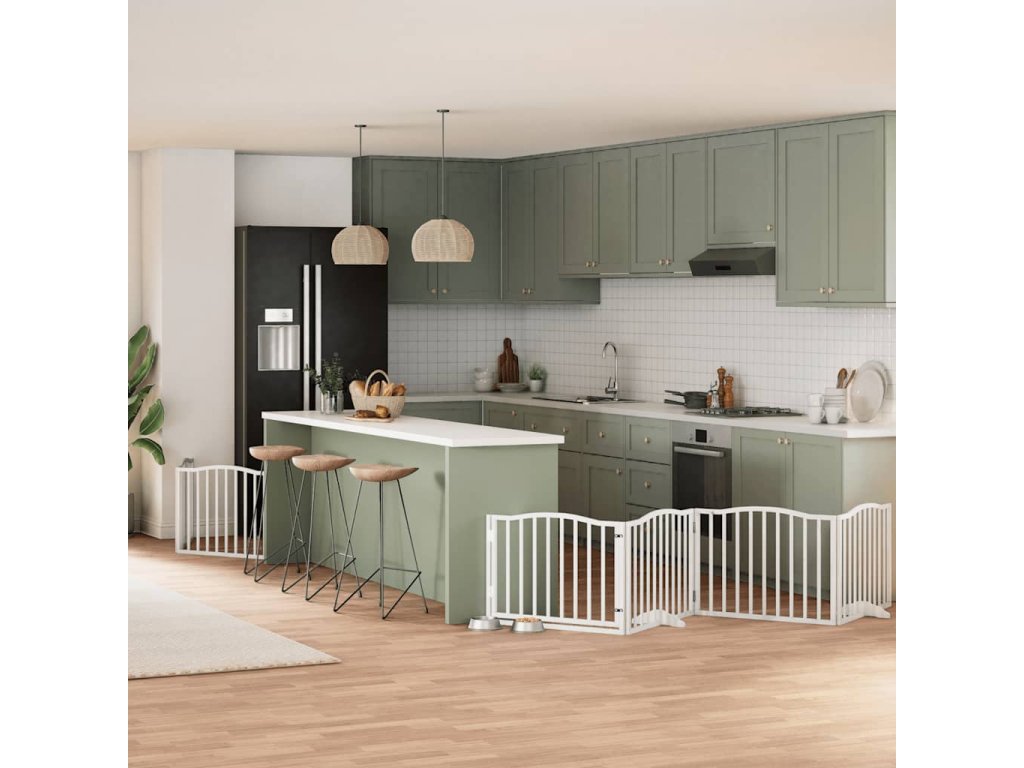 Multidom Brána pre psa s dverami sklad. 6pan. biela 480cm topoľové drevo