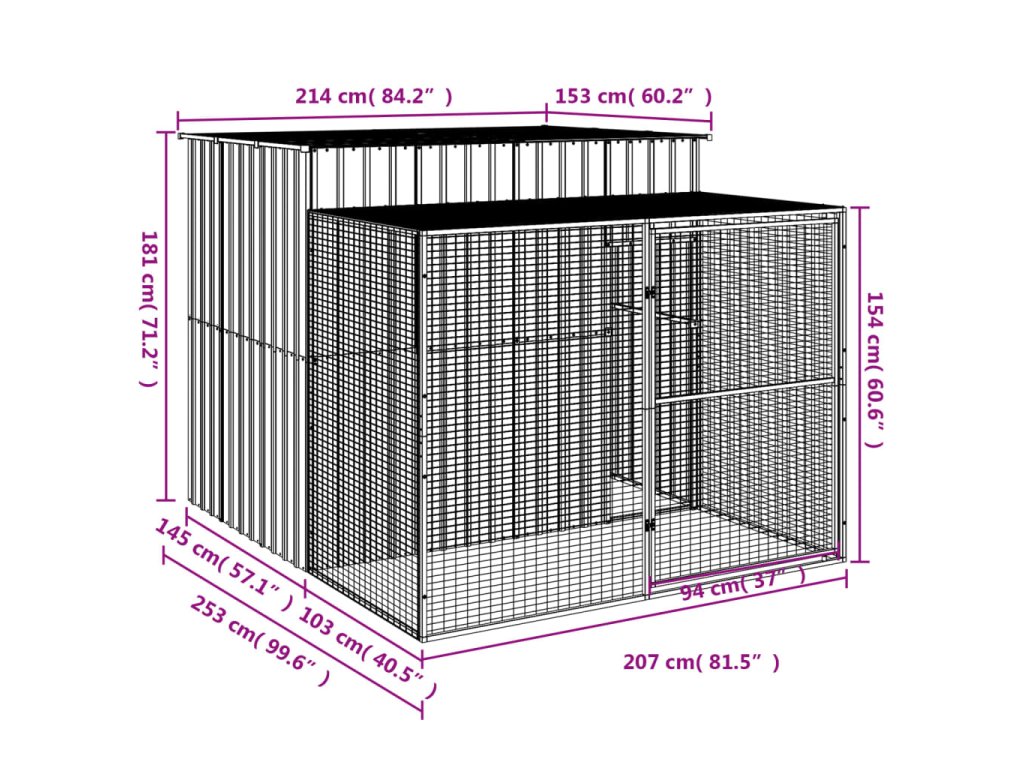 Multidom Búda pre psa s výbehom antracitová 214x253x181 cm pozink. oceľ