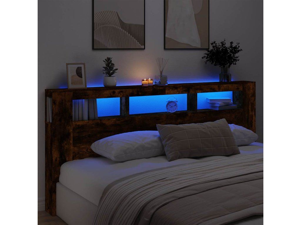 Multidom Čelo s LED dymový dub 220x18,5x103,5 cm kompozitné drevo