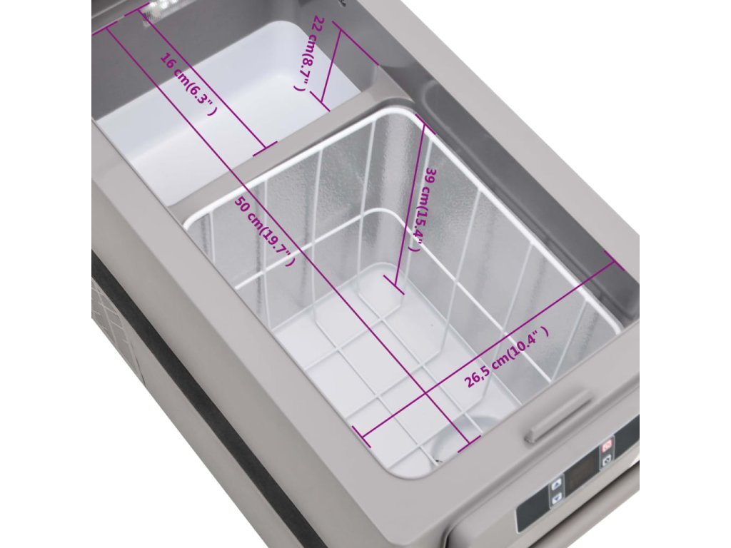 - Veľká kapacita: Chladiaci box má chladiacu zónu, ktorá poskytuje dostatok úložného priestoru na uloženie nápojov, ovocia, zeleniny, zmrzliny a mäsa. Odnímateľný kôš je tiež praktický na úpravu vnútorného priestoru a usporiadanie rôznych potravín.