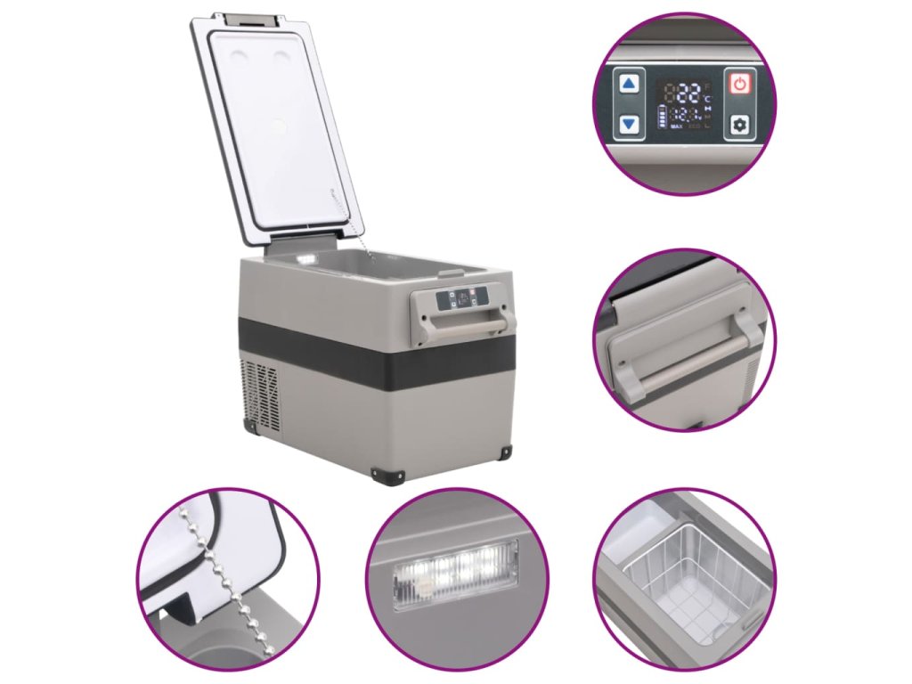 - Efektívne chladenie: Elektrický chladiaci box je vybavený silným kompresorom, ktorý dokáže obsah rýchlo vychladiť. Tepelná izolácia prináša dlhodobé chladenie, zachováva čerstvosť a jemnú chuť jedla.