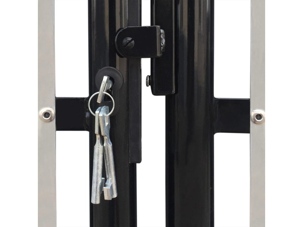 Brána má dva pevné stĺpiky s robustnými pántmi pre jednoduchú inštaláciu a súčasťou balenia je aj odolný uzamykací systém s troma kľúčmi. Záhradná brána stelesňuje dokonalú kombináciu štýlu, pevnosti, stability a odolnosti voči korózii!