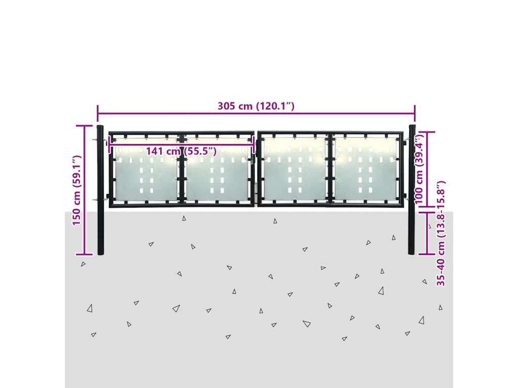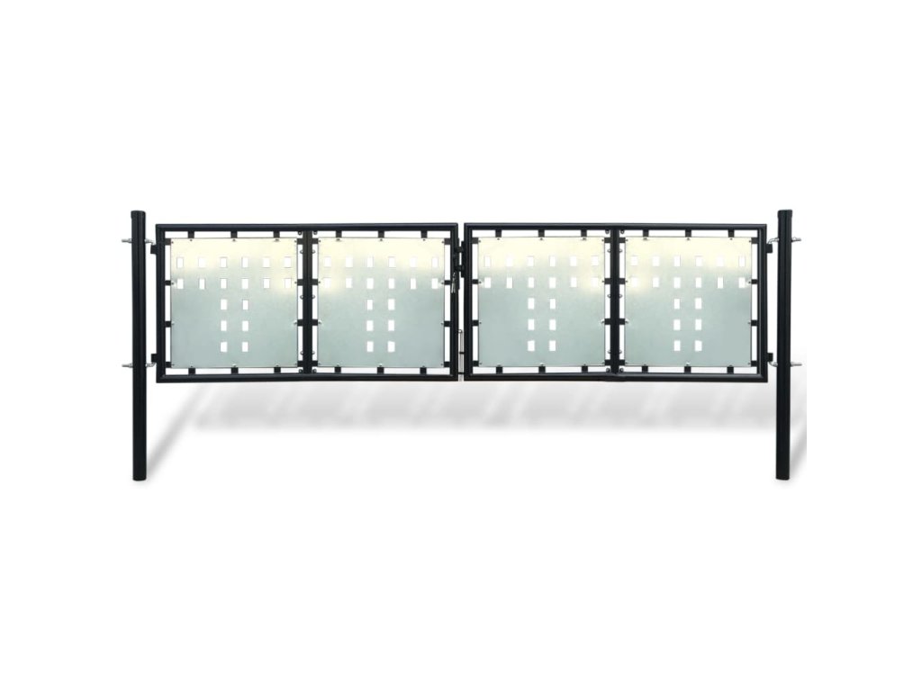 Vďaka pozinkovaným plechom s ozdobnými otvormi, ktoré spevňujú rám, poskytuje brána optimálnu bezpečnosť a súkromie, a zároveň vytvára pôsobivý vstup na pozemok. Brána je vyrobená z pevnej ocele s práškovou povrchovou úpravou, ktorá je odolná voči hrdzi a korózii.