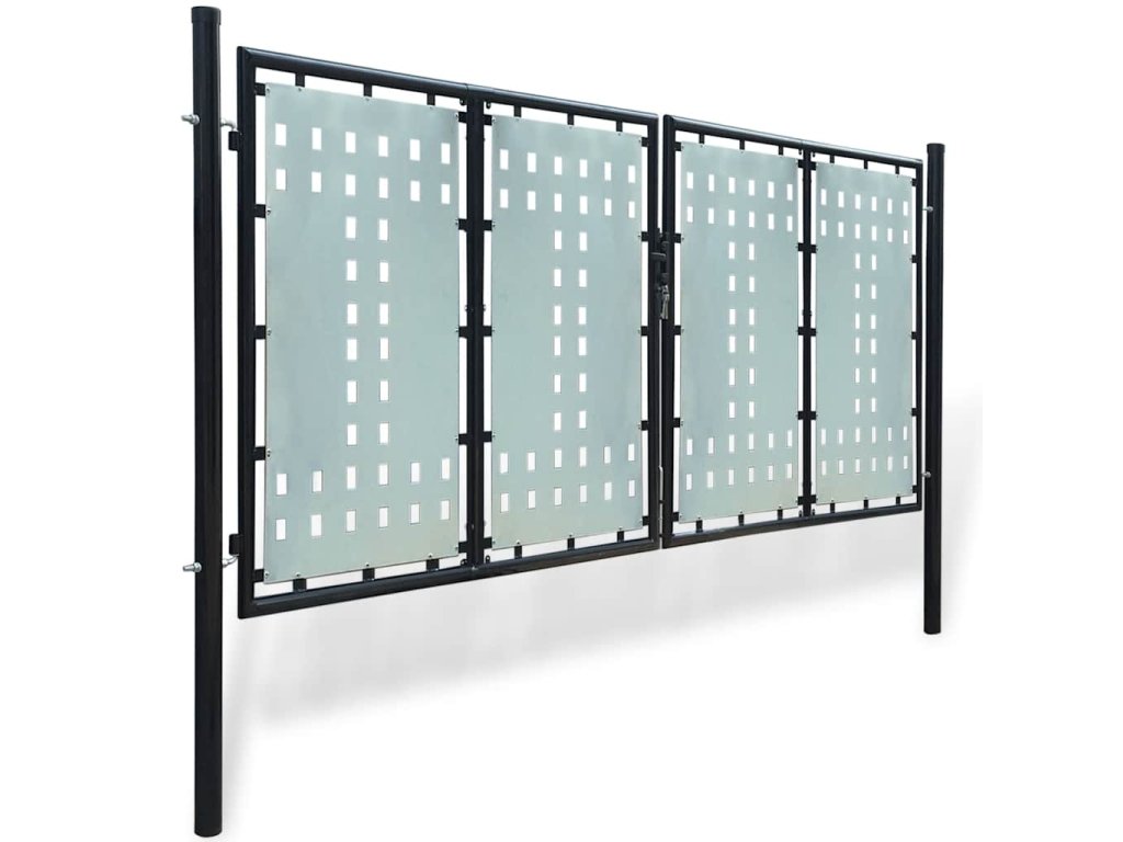 Vďaka pozinkovaným plechom s ozdobnými otvormi, ktoré spevňujú rám, poskytuje brána optimálnu bezpečnosť a súkromie, a zároveň vytvára pôsobivý vstup na pozemok. Brána je vyrobená z pevnej ocele s práškovou povrchovou úpravou, ktorá je odolná voči hrdzi a korózii.