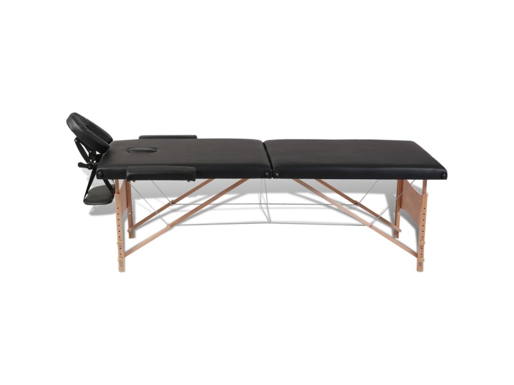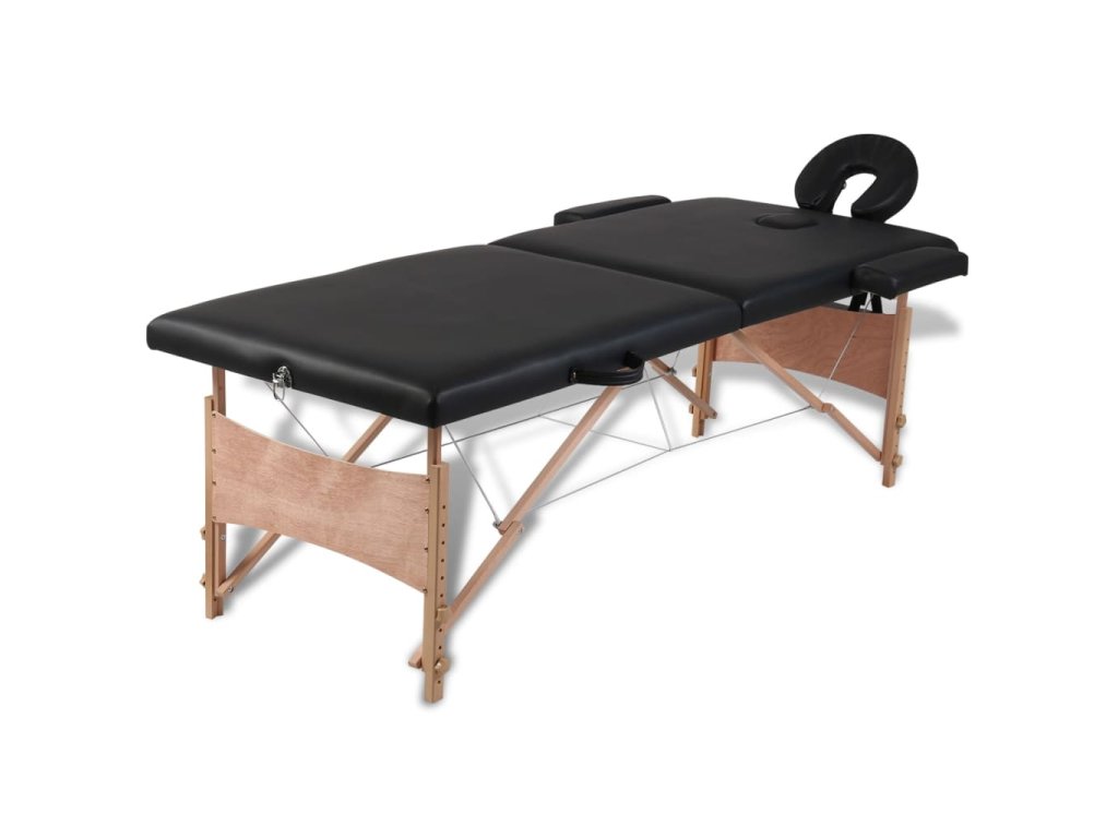 Multidom Čierny skladací masážny stôl, 2 zóny, drevený rám