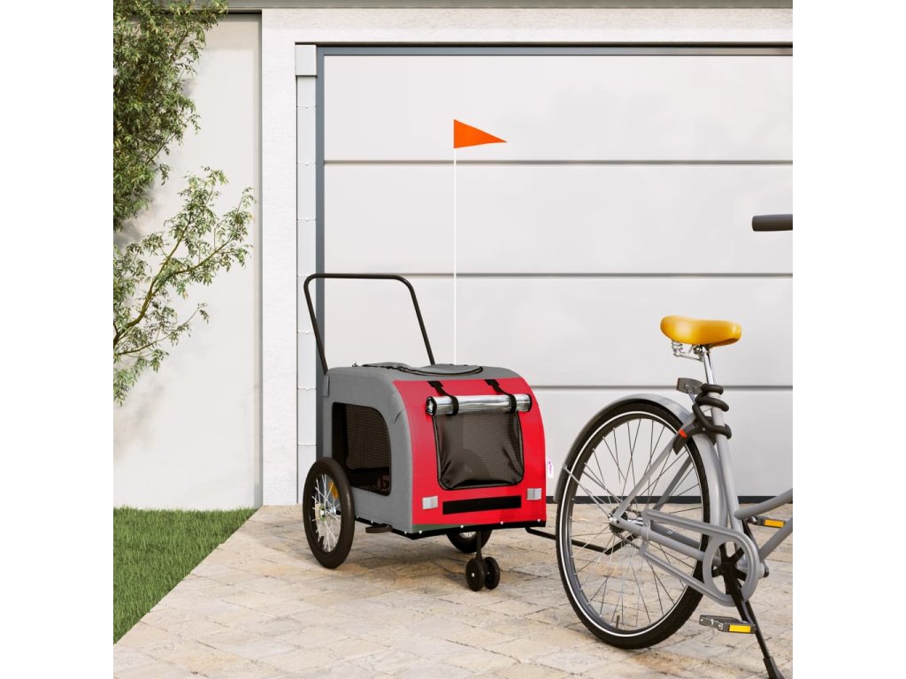 Multidom Cyklovozík pre zvieratá, červeno sivý, oxfordská látka, železo