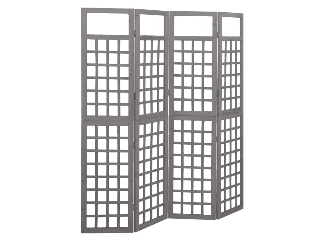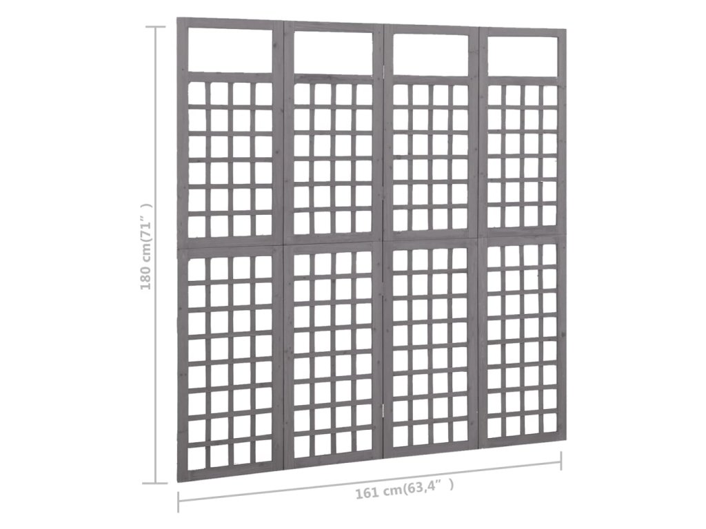 Multidom Deliaca stena/mriežka, 4 panely, jedľový masív, sivá 161x180 cm