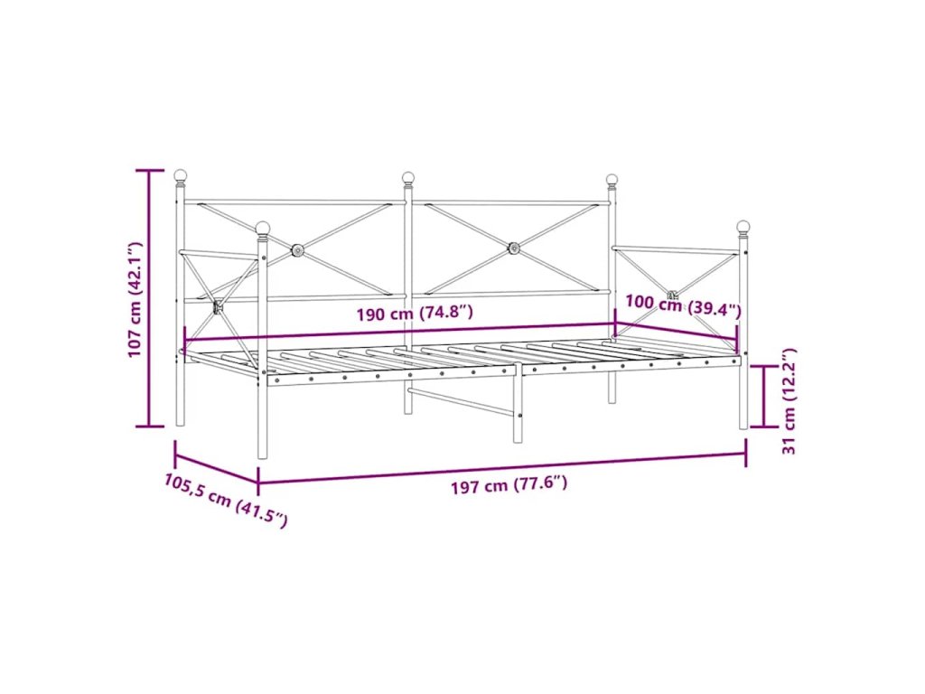 Multidom Denná posteľ bez matraca Čierna 100x190 cm Oceľ