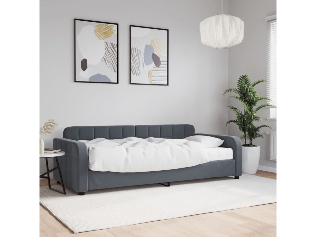 Multidom Denná posteľ s matracom tmavosivá 90x200 cm zamat