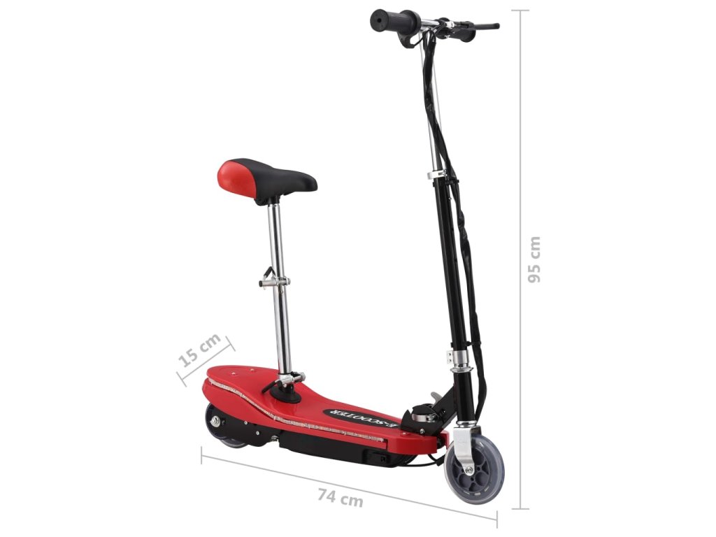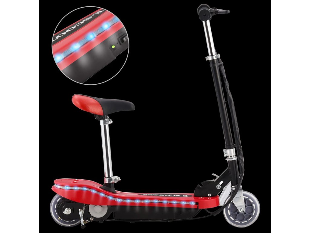Multidom Detská kolobežka so sedadlom a LED 120 W červená