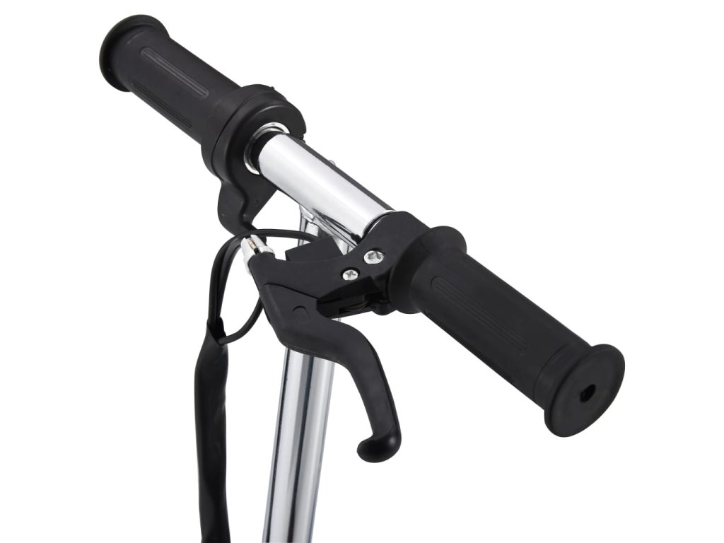 Kolobežka je vyrobená 3-farebným LED pásom, a tak je nielen atraktívnejšia ale aj lepšie viditeľná na tmavých miestach. Táto detská kolobežka jazdí naozaj hladko, potichu a je vybavená elektromotorom. Súčasťou kolobežky je výkonná batéria, ktorá funguje až 30 minút (v závislosti od nabitia). Kolobežka má zadnú brzdu. Detská kolobežka je vyrobená z hliníka a ocele a má robustný skladací rám. Riadidlá sa dajú nastaviť podľa výšky dieťaťa. Dieťa si môže pohodlne sadnúť na zabudované sedadlo. Kolobežka má dômyselne riešený skladací dizajn, takže sa dá jednoducho preniesť aj skladovať.