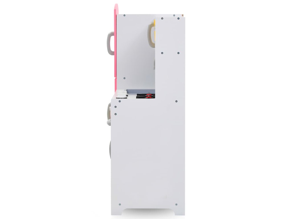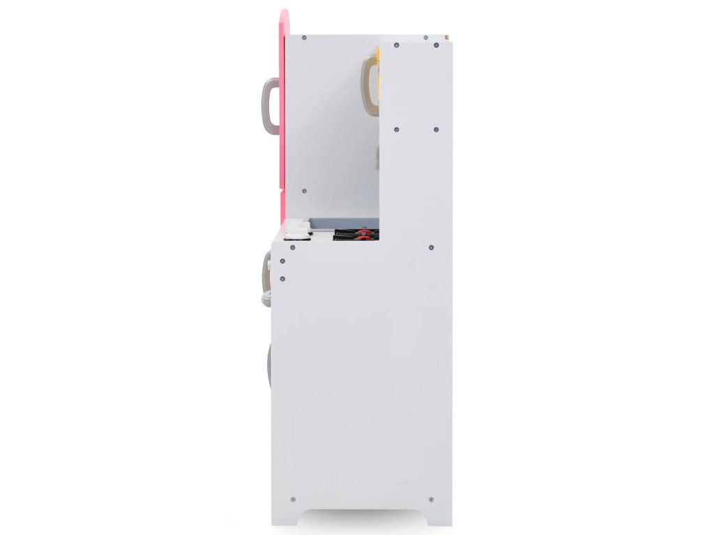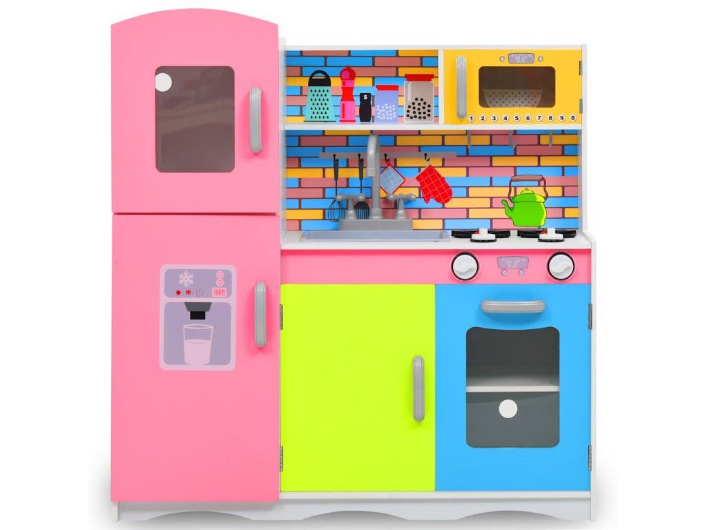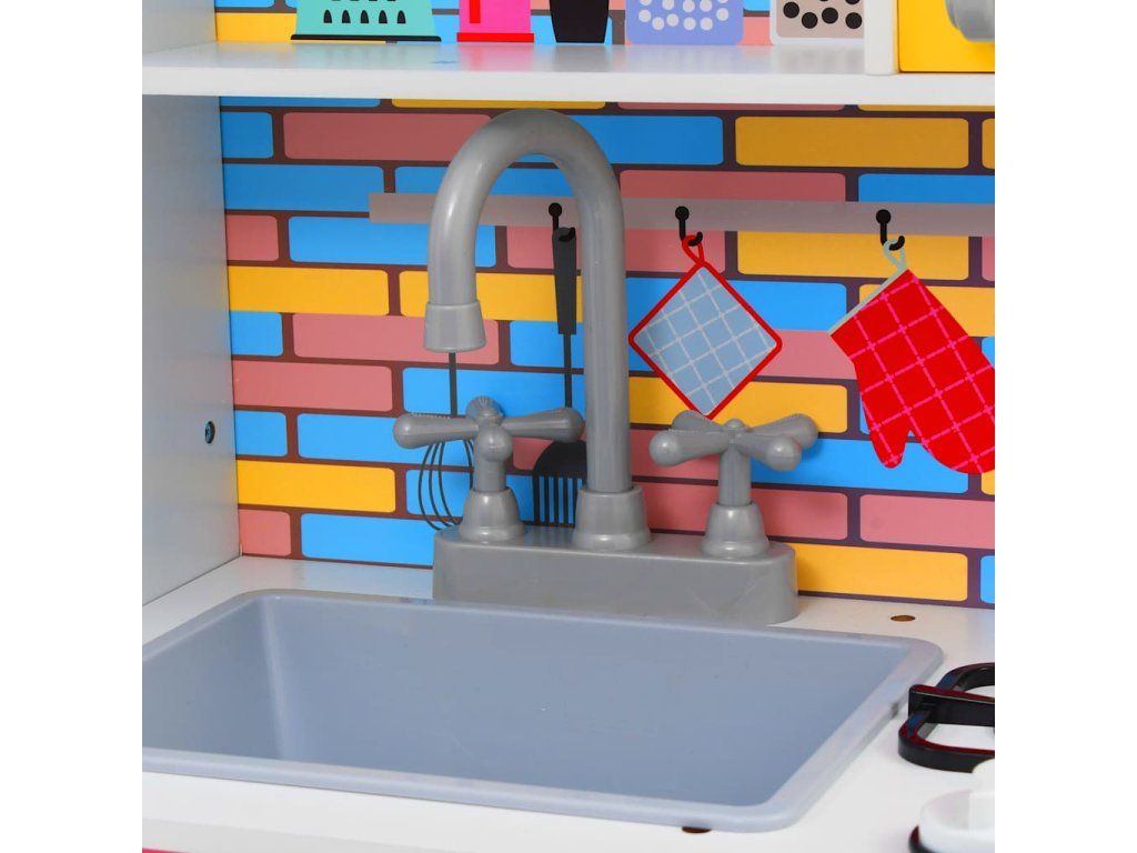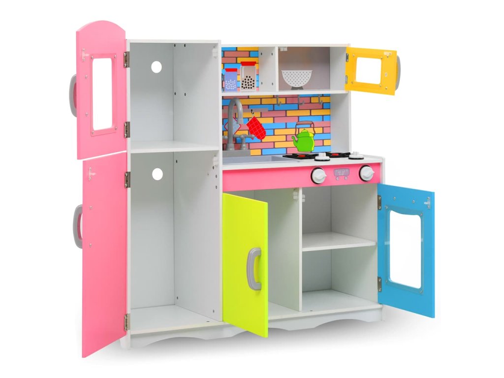 Úžasná hračkárska kuchynka je dodávaná s kuchynským riadom a spotrebičmi, ako je rúra, drez, mikrovlnná rúra atď. Počas hry sa deti stretnú so situáciami, ako je koordinácia tímu alebo komunikácia. Navyše sa deti naučia aj upratovať! Kuchynka je vyrobená z MDF a je veľmi odolná a stabilná.